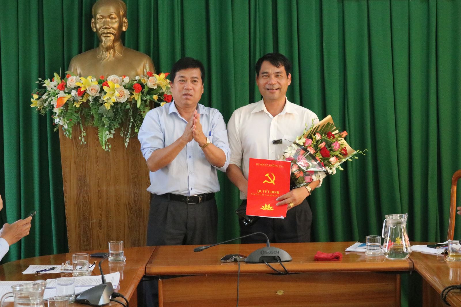 Đồng chí Nguyễn Kính, Bí thư Huyện ủy trao Quyết định cho đồng chí Hoàng Minh Giám