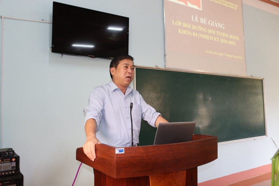 Được sự đồng ý của Thường trực Huyện uỷ, từ ngày 20/9 đến 27/9/2021, Trung tâm Bồi dưỡng chính trị huyện Krông Ana phối hợp với Ban tổ chức Huyện ủy tổ chức khai giảng và duy trì việc học tập, rèn luyện lớp Bồi dưỡng đối tượng kết nạp Đảng khóa 04 (nhiệm kỳ 2020-2025) dành cho 76 đối tượng là quần chúng ưu tú trên địa bàn huyện. Ban tổ chức lớp học đã phân lớp thành 2 tổ học xen kẽ để phòng, chống dịch COVID-19.