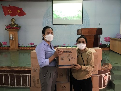 Bà Nguyễn Thị Định Chủ tịch hội LHPN thị trấn trao bếp cho hội viên