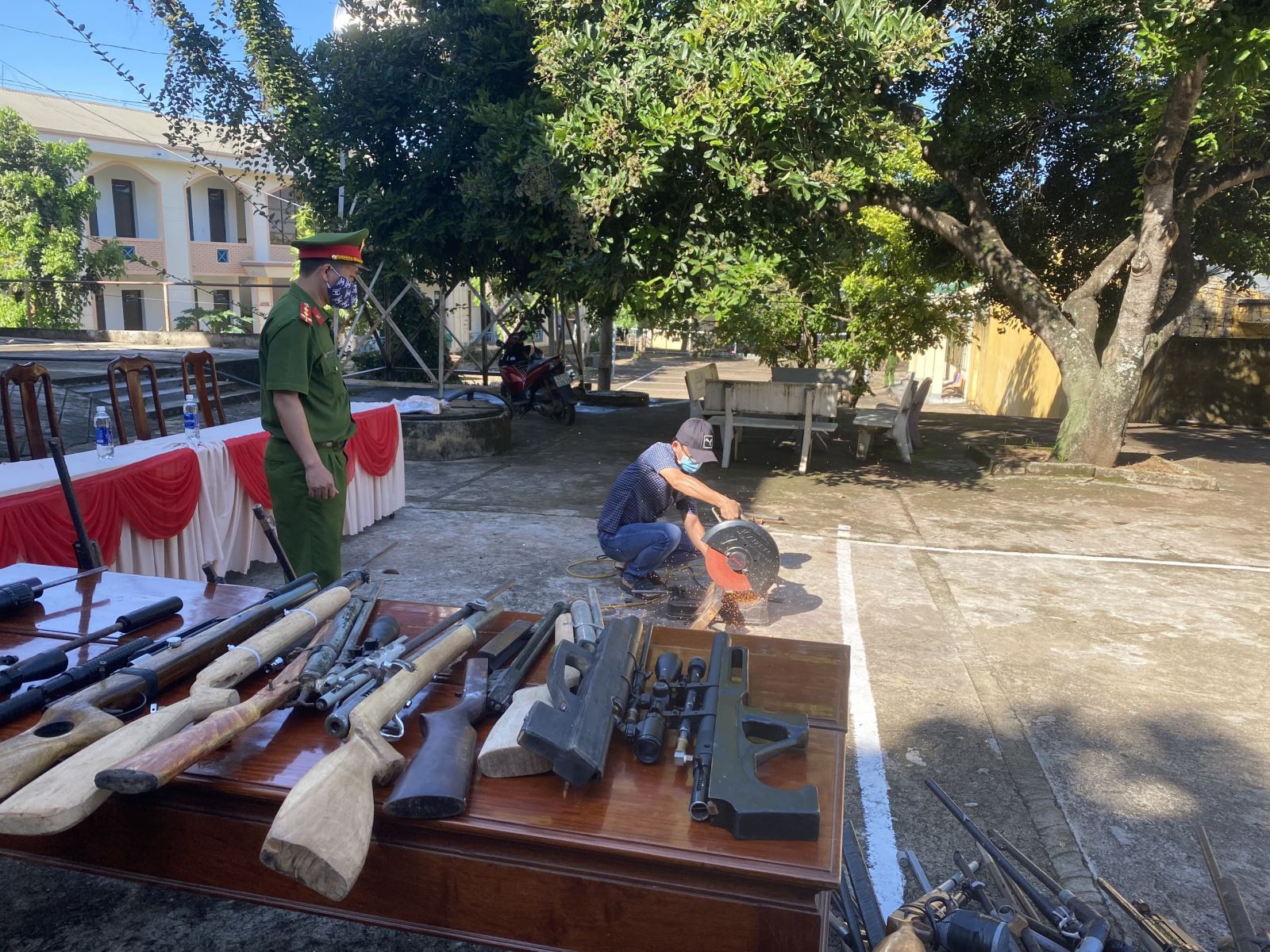 Công an huyện tiến hành tiêu hủy vũ khí , vật liệu nổ, công cụ hỗ trợ năm 2021