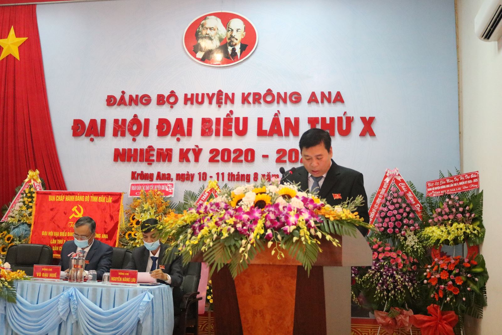 Phát biểu chỉ đạo Đại hội, đồng chí Bùi Văn Cường, Ủy viên Trung ương Đảng, Bí thư Tỉnh ủy ghi nhận và nhiệt liệt biểu dương những thành quả trên nhiều lĩnh vực của huyện Krông Ana trong nhiệm kỳ 2015 - 2020. Song, đồng chí cũng nêu một số hạn chế còn tồn tại, đó là: tăng trưởng kinh tế chưa thực sự bền vững; môi trường đầu tư kinh doanh chưa được cải thiện rõ nét, tiến độ giải phóng mặt bằng một số dự án còn chậm; chưa thu hút được các dự án công nghiệp quy mô lớn để tạo sự lan tỏa, bứt phá trong tăng trưởng kinh tế của huyện; trong nông nghiệp, việc phát triển nông nghiệp sản xuất lớn, ứng dụng công nghệ cao, theo chuỗi giá trị còn chậm, chưa tương xứng với tiềm năng, lợi thế của địa phương. Một số mặt hoạt động văn hóa - xã hội chậm chuyển biến. An ninh trật tự ở một số xã và một số địa bàn còn tiềm ẩn phức tạp. Năng lực lãnh đạo, chỉ đạo và sức chiến đấu của một số cấp uỷ Đảng, chính quyền còn hạn chế. Hoạt động của Mặt trận tổ quốc và các đoàn thể chính trị - xã hội ở một số cơ sở hiệu quả chưa cao, chưa tập hợp được đông đảo nhân dân tham gia…