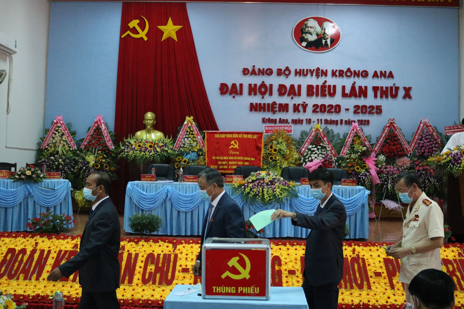 Đại hội đã bầu 36/41 Ủy viên Ban chấp hành Đảng bộ huyện khóa X, nhiệm kỳ 2020-2025 (khuyết 5 đồng chí sẽ bổ sung trong nhiệm kỳ); lấy phiếu tín nhiệm giới thiệu nhân sự ứng cử chức danh Bí thư Huyện ủy khóa X, nhiệm kỳ 2020-2025. Ban Chấp hành khóa X đã bầu 11 đồng chí UVBTV, bầu đồng chí Nguyễn Kính tái cử chức danh Bí thư Huyện ủy Krông Ana; đồng chí Y Nem Buôn Krông và đồng chí Võ Đại Huế tái cử chức Phó Bí thư Huyện ủy. Tại đại hội cũng đã bầu đoàn đại biểu tham dự Đại hội Đảng bộ tỉnh lần thứ XVII gồm 13 đại biểu chính thức và 01 đại biểu dự khuyết.