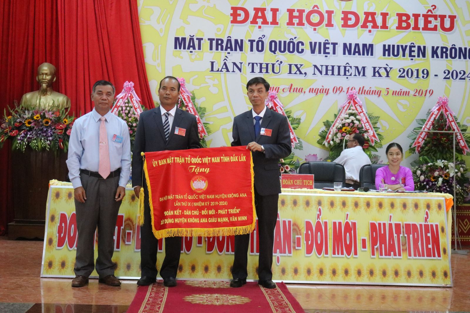 Ông Y Dec H’Đơk Ủy viên BTV Tỉnh ủy, Chủ tịch Ủy ban MTTQ Việt Nam tỉnh, tặng Đại hội bức trướng “Đoàn kết - Dân chủ - Đổi mới - Phát triển”