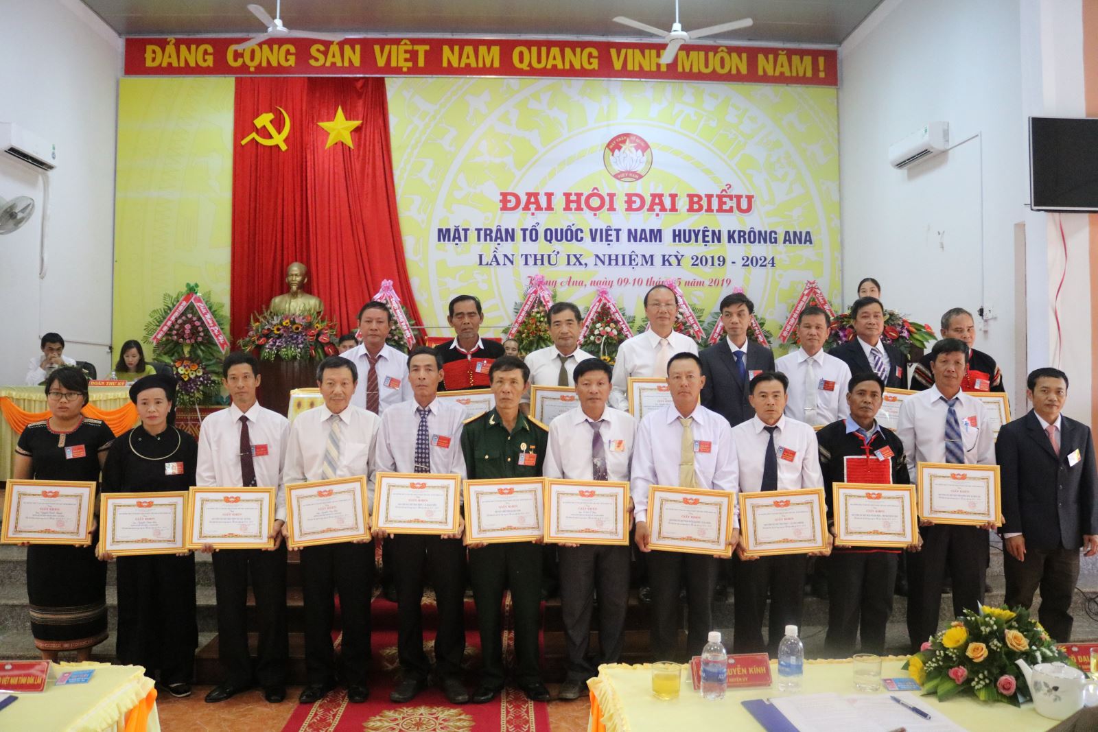 Nhân dịp này, Ủy ban MTTQ Việt Nam tỉnh tặng Giấy khen cho 01 tập thể, 02 cá nhân; Chủ tịch UBND huyện tặng Giấy khen cho 04 tập thể, 04 cá nhân và Ủy ban MTTQ Việt Nam huyện tặng Giấy khen cho 08 tập thể và 10 cá nhân đã có thành tích xuất sắc trong thực hiện nhiệm vụ Mặt trận khóa VIII, nhiệm kỳ 2014 - 2019.