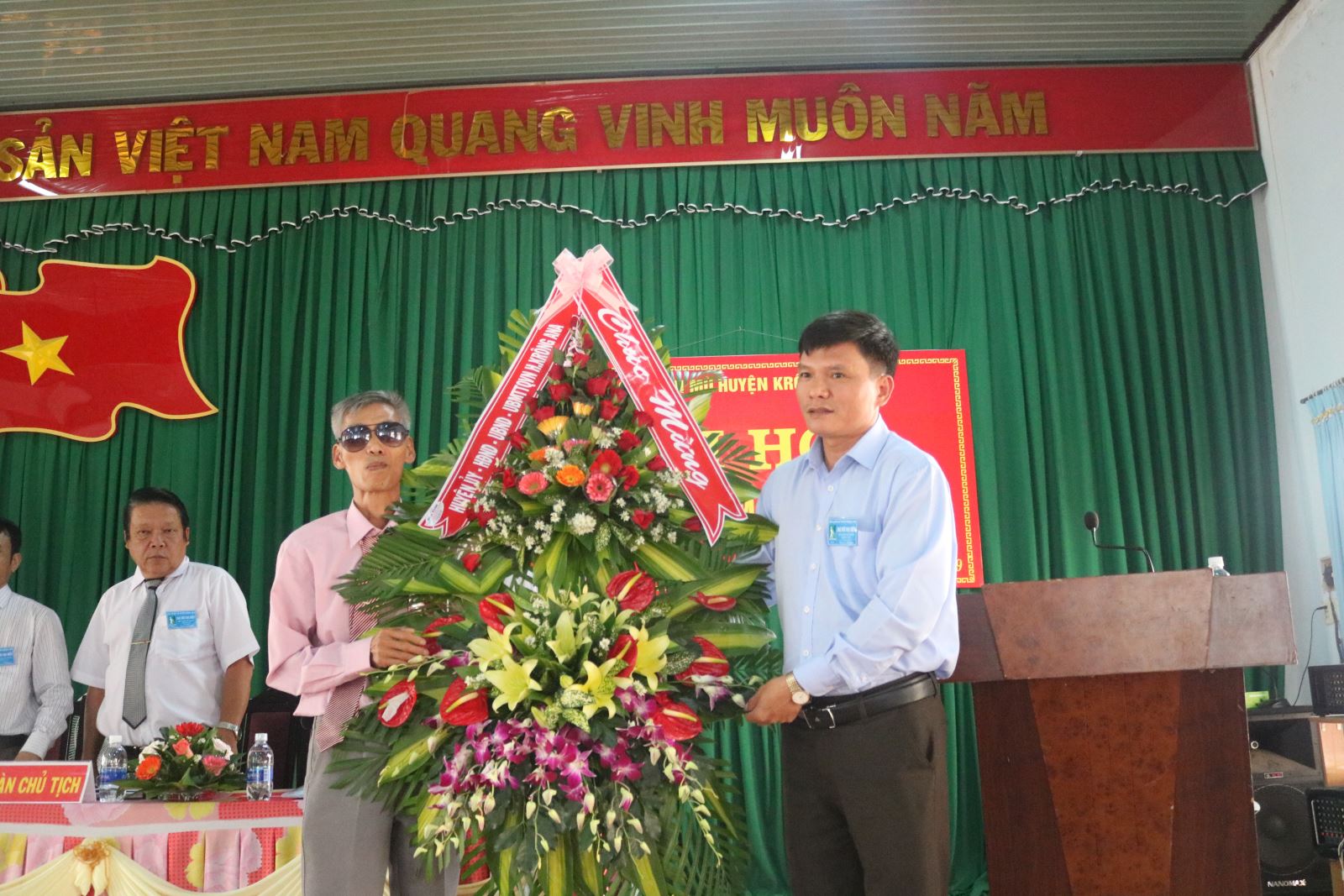 Ông Nguyễn Minh Đông - Phó Chủ tịch UBND huyện phát biểu và tặng hoa chúc mừng Đại hội
