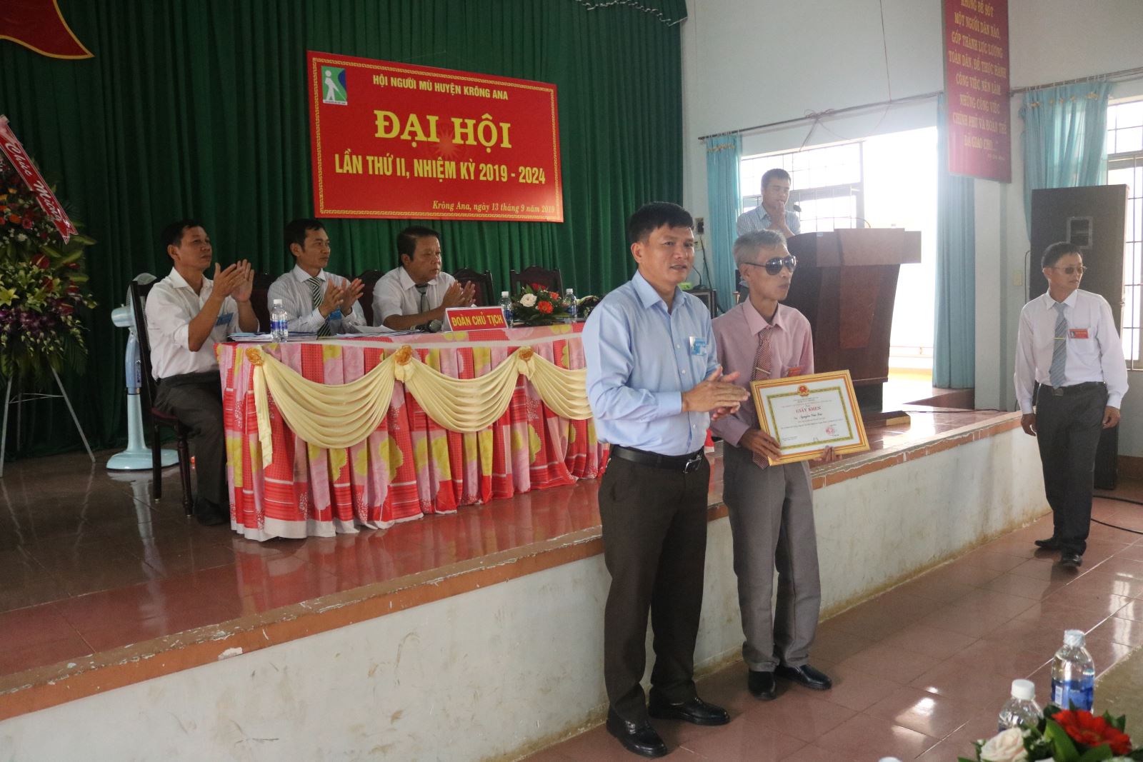 Nhân dịp này, Hội Người mù tỉnh đã tặng giấy khen cho 01 tập thể và 02 cá nhân; UBND huyện tặng giấy khen cho cho 01 cá nhân; UBMTTQ Việt Nam huyện tặng giấy khen cho 02 cá nhân nỗ lực xuất sắc trong nhiệm kỳ qua.