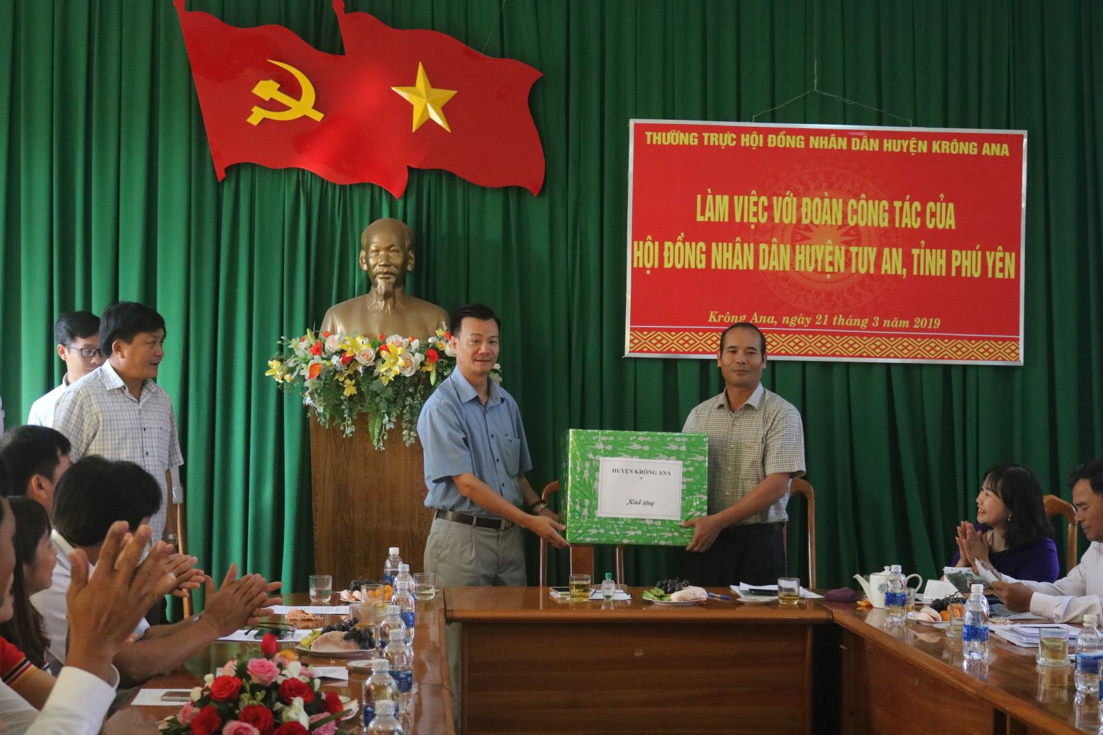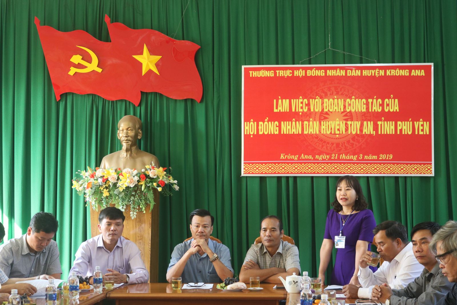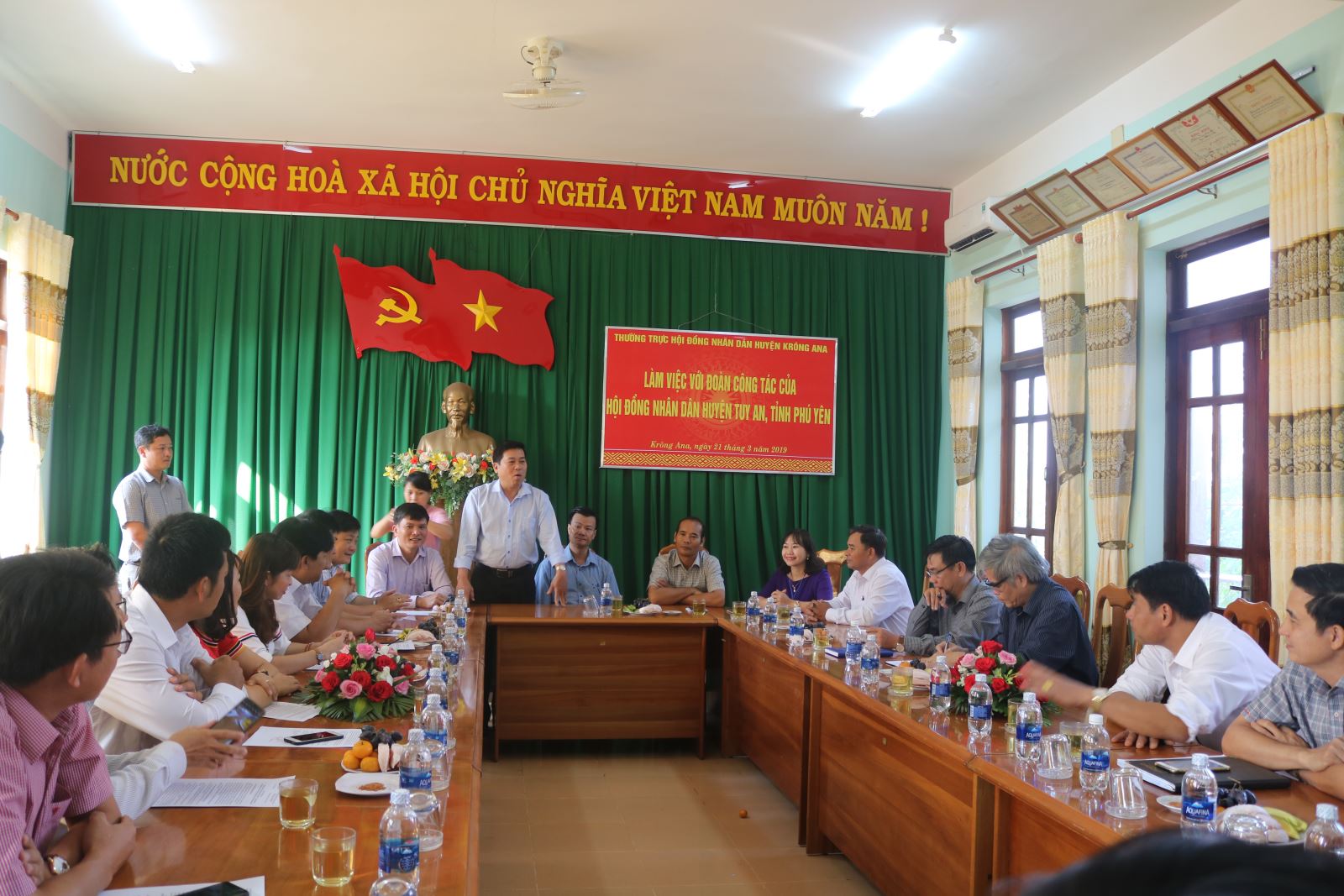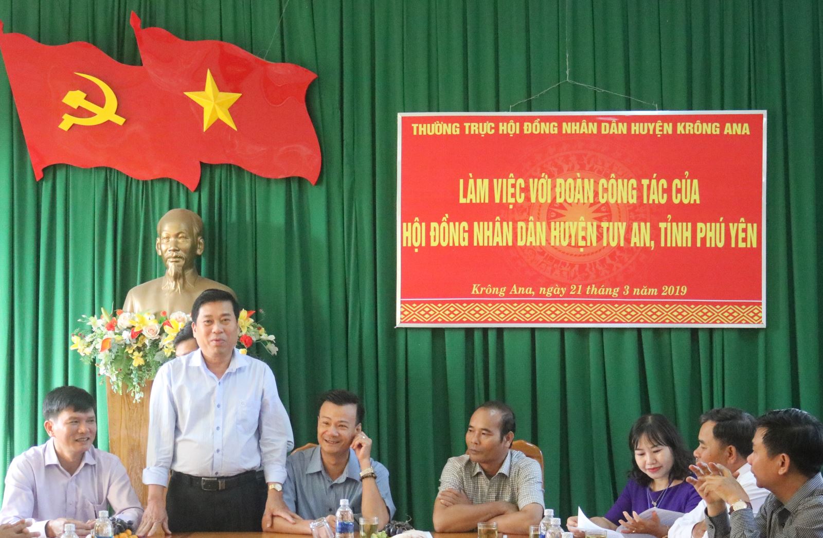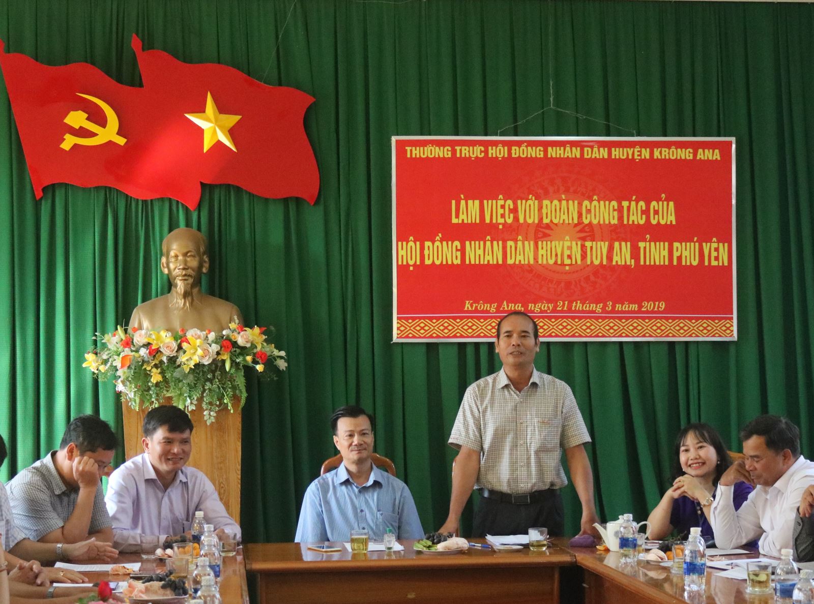 Ngày 21/3/2019, đoàn đại biểu HĐND huyện Tuy An, tỉnh Phú Yên do ông Lê Hồng Phong, Ủy viên BTV, Phó Chủ tịch HĐND huyện làm Trưởng đoàn đã có buổi thăm, học tập, trao đổi kinh nghiệm tại huyện Krông Ana, tham gia đoàn có các thành viên là đại biểu HĐND huyện và lãnh đạo một số phòng, ban, ngành của huyện Tuy An. Về phía huyện Krông Ana, tham gia tiếp đón đoàn có ông Nguyễn Kính, Bí thư Huyện ủy; ông Y Nem Buôn Krông, Phó Bí thư Huyện ủy, Chủ tịch HĐND huyện; ông Nguyễn Minh Đông, Phó Chủ tịch UBND huyện; các ông bà trong Thường trực HĐND huyện, các đại biểu HĐND huyện và đại diện lãnh đạo các phòng, ban thuộc huyện.