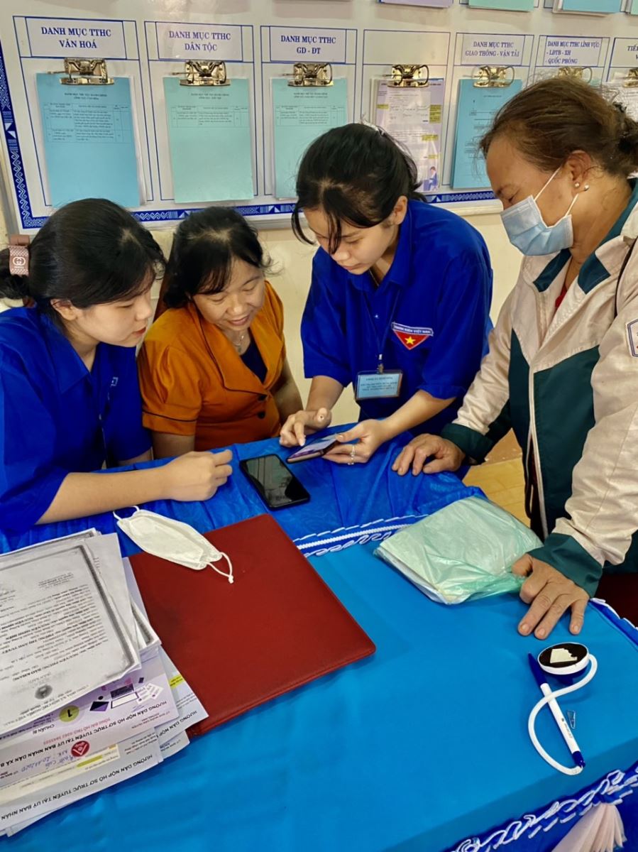 Với sự năng động, sáng tạo, đoàn viên, thanh niên (ĐVTN) hỗ trợ, hướng dẫn người dân làm quen sử dụng DVCTT tại Bộ phận Tiếp nhận và Trả kết quả của xã vào các ngày thứ hai đến thứ sáu, đợt ra quân (Từ ngày 08/8/2022 đến ngày 19/8/2022). Mỗi ngày có 03 đoàn viên đến tại bộ phận tiếp nhận và trả kết quả xã để trực tiếp tuyên truyền, hướng dẫn người dân cách thức tiếp cận và nộp hồ sơ qua cổng dịch vụ công. Bên cạnh đó, ĐVTN còn tuyên truyền, hướng dẫn quy trình, thủ tục, cách sử dụng phần mềm DVCTT để các tổ chức, cá nhân biết và khai thác, sử dụng.