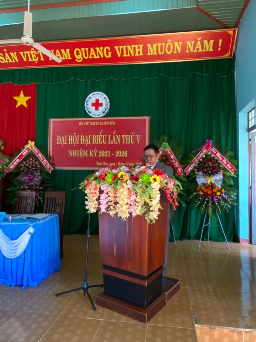 Phát biểu tại Đại hội, ông Nguyễn Minh Thu, Chủ tịch Hội Chữ thập đỏ huyện; đã biểu dương ghi nhận những kết quả Hội Chữ thập đỏ xã Bình Hoà đạt được trong nhiệm kỳ qua, đồng thời mong muốn trong nhiệm kỳ 2021 - 2026, Ban Chấp hành Hội Chữ thập đỏ xã tiếp tục đoàn kết, thống nhất, kế thừa, phát huy những thành quả đã đạt được, đồng tâm hiệp lực để hoàn thành tốt mọi nhiệm vụ mà Nghị quyết Đại hội lần thứ V đề ra.