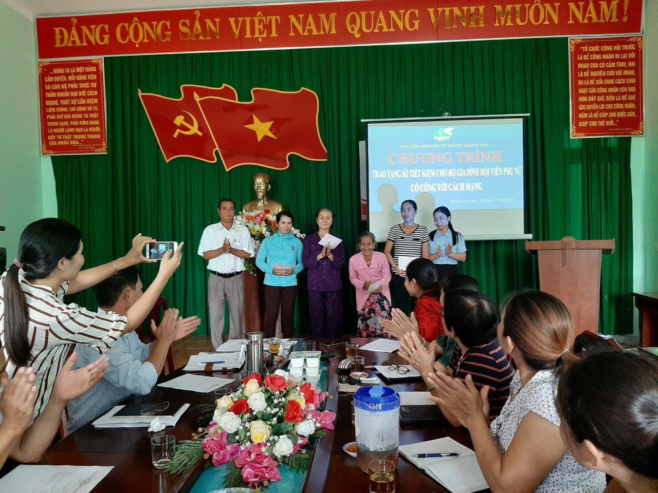 Tại Hội nghị, Hội Liên hiệp Phụ nữ huyện đã trao 04 sổ tiết kiệm cho phụ nữ có công với tổng số tiền trị giá 20 triệu đồng