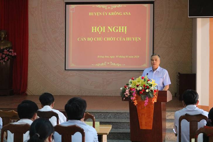 Ngày 05/3/2020, Huyện ủy Krông Ana tổ chức Hội nghị cán bộ chủ chốt của huyện để triển khai công tác tổ chức cán bộ và một số nội dung quan trọng khác. Đồng chí Nguyễn Kính - Bí thư Huyện ủy chủ trì Hội nghị.