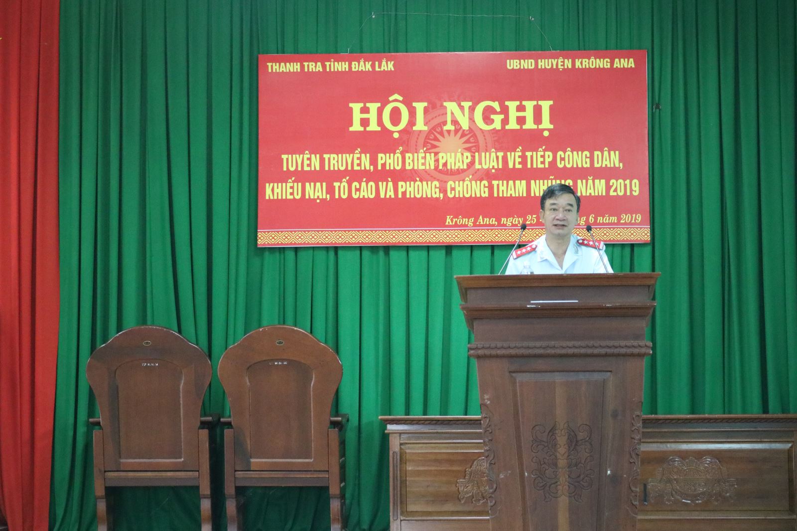Ngày 25, 26/6/2019, Thanh tra tỉnh Đắk Lắk phối hợp với UBND huyện Krông Ana tổ chức Hội nghị phổ biến, giáo dục pháp luật năm 2019. Hội nghị do ông Phạm Văn Sáu, Phó Chánh Thanh tra tỉnh - chủ trì; tham dự Hội nghị có đại diện lãnh đạo UBND huyện.