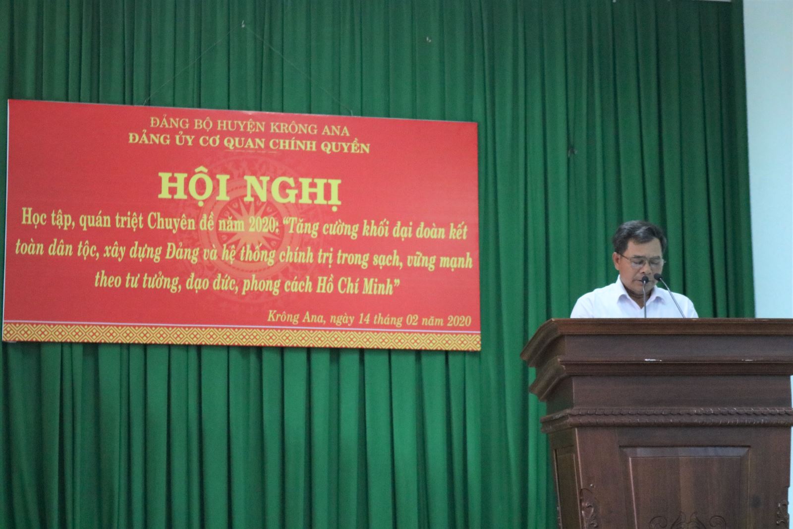 Ngày 14/02/2020, Đảng ủy Cơ quan chính quyền (CQCQ) huyện Krông Ana tổ chức Hội nghị quán triệt và tổ chức thực hiện Chuyên đề học tập và làm theo tư tưởng, đạo đức, phong cách Hồ Chí Minh năm 2020. Hội nghị do đồng chí Y Tam Êban, Phó Bí thư Đảng ủy CQCQ - chủ trì; tham dự Hội nghị có đồng chí Phạm Ngọc Hùng, Ủy viên Ban Thường vụ Đảng ủy; đồng chí Nguyễn Thị Phương Thảo - Phó Trưởng Ban Tuyên giáo Huyện ủy; các đồng chí Bí thư các Chi bộ trực thuộc và toàn thể cán bộ, đảng viên, công chức, viên chức trong Đảng bộ CQCQ.