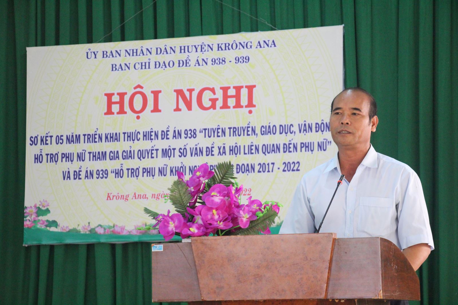 Ngày 05/7/2022, Ban Chỉ đạo Đề án 938 “Tuyên truyền, giáo dục, vận động, hỗ trợ phụ nữ tham gia giải quyết một số vấn đề xã hội liên quan đến phụ nữ” và Đề án 939 “Hỗ trợ phụ nữ khởi nghiệp” huyện Krông Ana tổ chức Hội nghị sơ kết Đề án giai đoạn 2017 – 2022. Hội nghị do đồng chí Hoàng Minh Giám - Phó Chủ tịch UBND huyện, Trưởng Ban chỉ đạo đề án, Chủ trì. Về dự Hội nghị có đồng chí Y Nem Buôn Krông - Phó Bí thư Huyện ủy, lãnh đạo các phòng, ban, ngành, đoàn thể của huyện và các xã, thị trấn…