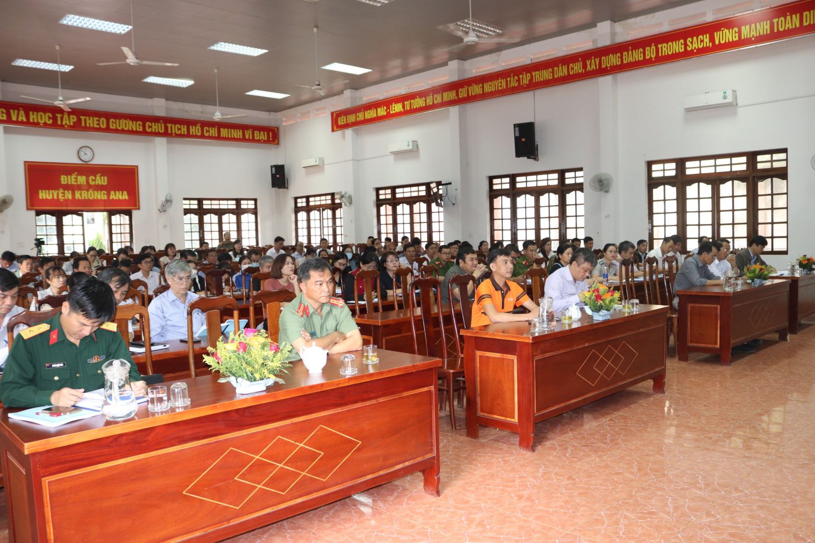 Tham dự có lãnh đạo các phòng, ban xây dựng Đảng thuộc huyện ủy, cán bộ phụ trách công tác BVBMNN; các thành viên Ban chỉ đạo BVBMNN của huyện; lãnh đạo các ban, ngành, đoàn thể, tổ chức chính trị xã hội, trường học trên địa bàn huyện; lãnh đạo UBND, cán bộ làm công tác văn thư, lưu trữ, ban chỉ huy quân sự xã, thị trấn.