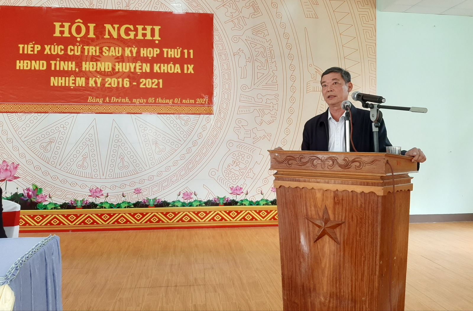 Ngày 05/01/2021, trên địa bàn toàn huyện tổ chức Hội nghị tiếp xúc cử tri sau kỳ họp thứ 11 HĐND huyện Krông Ana khóa IX, nhiệm kỳ 2016-2021. Riêng tai xã Băng A Drênh Ban Thường trực Ủy ban MTTQ Việt Nam huyện đã kết hợp tổ chức Hội nghị tiếp xúc cử tri sau kỳ họp thứ 11 HĐND tỉnh, HĐND huyện Krông Ana khóa IX, nhiệm kỳ 2016-2021. Về tiếp xúc với cử tri có ông Y Giang Gry Niê Knơng, Phó Chủ tịch UBND tỉnh; ông Nguyễn Ngọc Những, Trưởng Ban Kinh tế - Ngân sách HĐND tỉnh, ông Y Nem Buôn Krông, Chủ tịch HĐND huyện, ông Võ Đại Huế, CT UBND huyện và các đại biểu HĐND huyện.