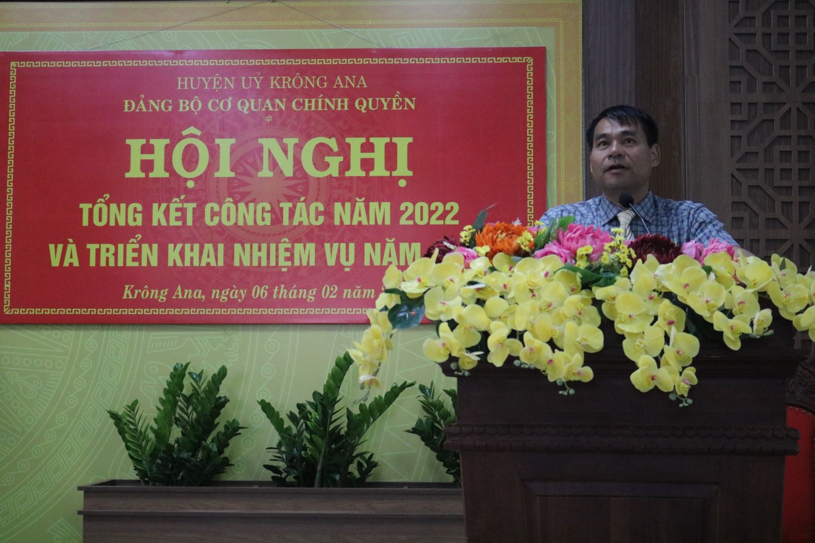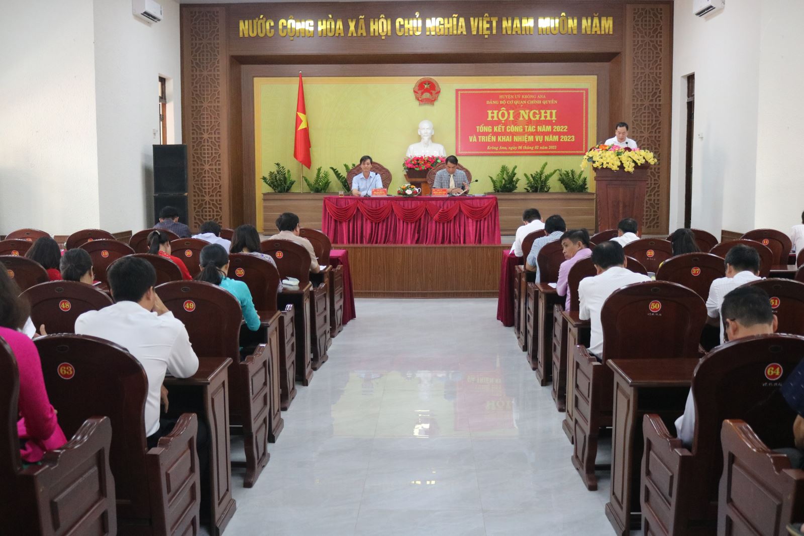 Chiều ngày 06/02/2023, Đảng uỷ Cơ quan Chính quyền tổ chức Hội nghị Tổng kết công tác Đảng năm 2022, triển khai nhiệm vụ năm 2023. Hội nghị do đồng Chí Hoàng Minh Giám, UVBTV Huyện uỷ, Bí thư Đảng uỷ và đồng chí Mai Văn Phương, UVBTV Huyện uỷ, Phó Bí thư Đảng uỷ đồng chủ trì; dự và chỉ đạo Hội nghị có đồng chí Nguyễn Thanh Vũ, Phó Bí thư Huyện uỷ, Chủ tịch UBND huyện; các đồng chí Uỷ viên Ban Thường vụ Đảng uỷ, Uỷ ban Kiểm tra Đảng uỷ, Bí thư các chi bộ trực thuộc và toàn thể đảng viên trong Đảng bộ.