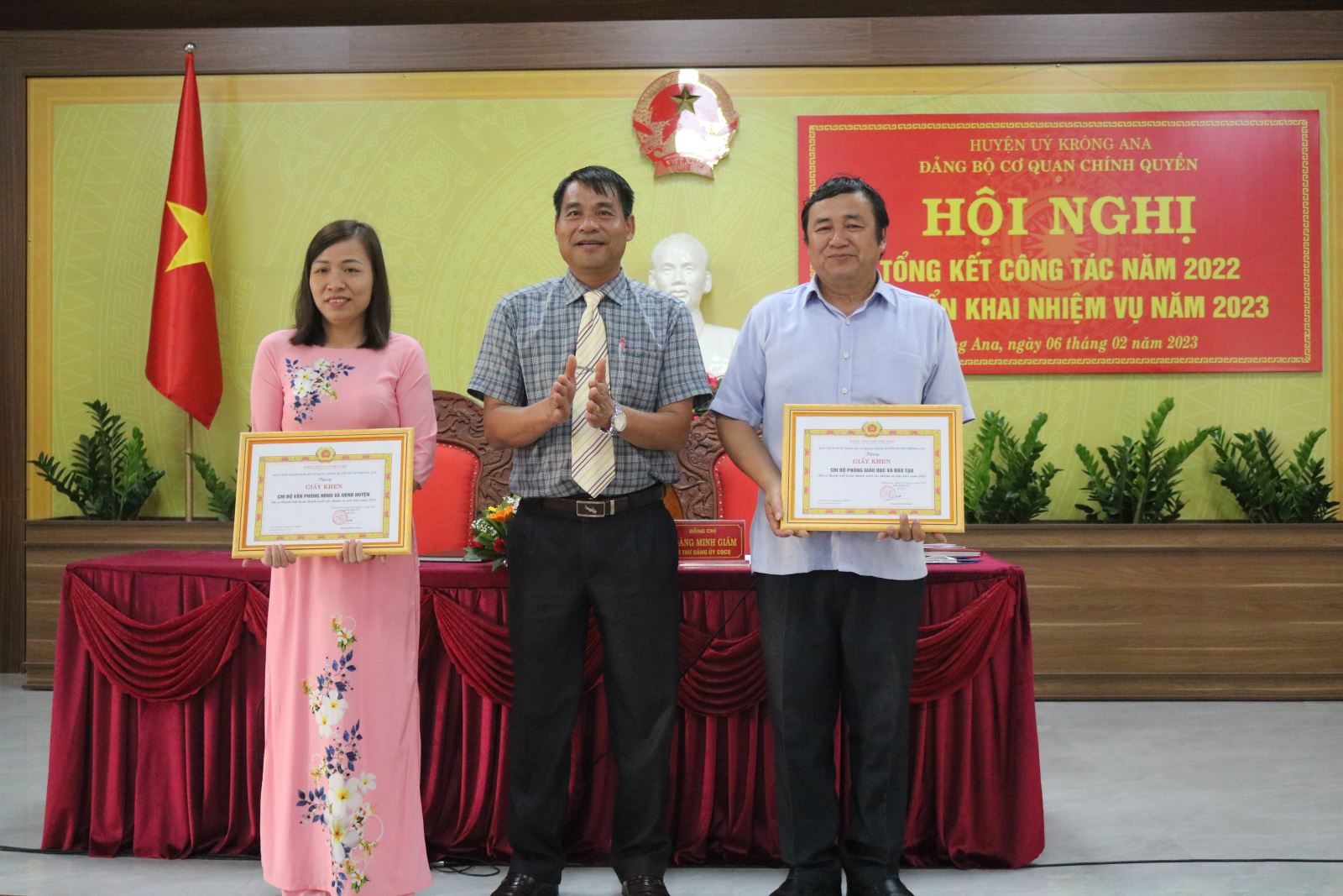 Nhân dịp này, Đảng bộ cơ quan chính quyền huyện đã trao Quyết định cho 02 Chi bộ “trong sạch vững mạnh”; tặng giấy khen cho 2 chi bộ hoàn thành xuất sắc nhiệm vụ, tặng giấy khen cho 16 đảng viên có thành tích “hoàn thành xuất sắc nhiệm vụ năm 2021” và ký giao ước thi đua đối với các chi bộ.