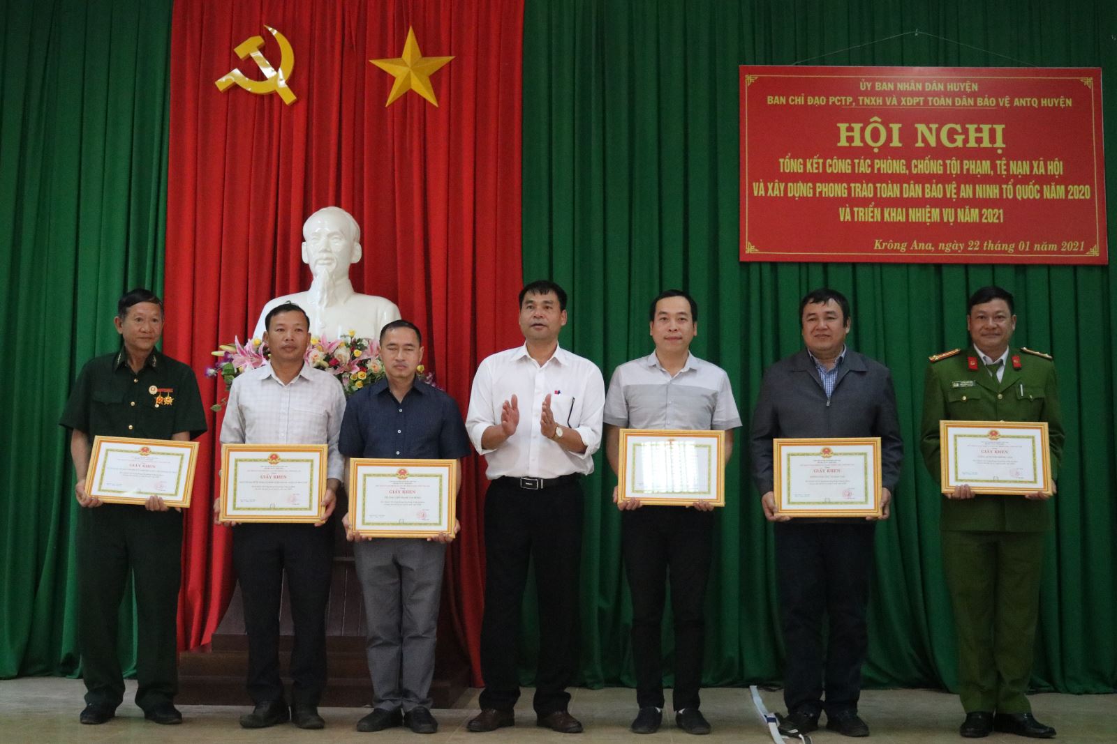Nhân dịp này, UBND huyện đã khen thưởng cho 6 tập thể và 19 cá nhân có thành tích xuất sắc trong công tác phòng chống tội phạm, tệ nạn xã hội và xây dựng phong trào “Toàn dân bảo vệ ANTQ” năm 2020.