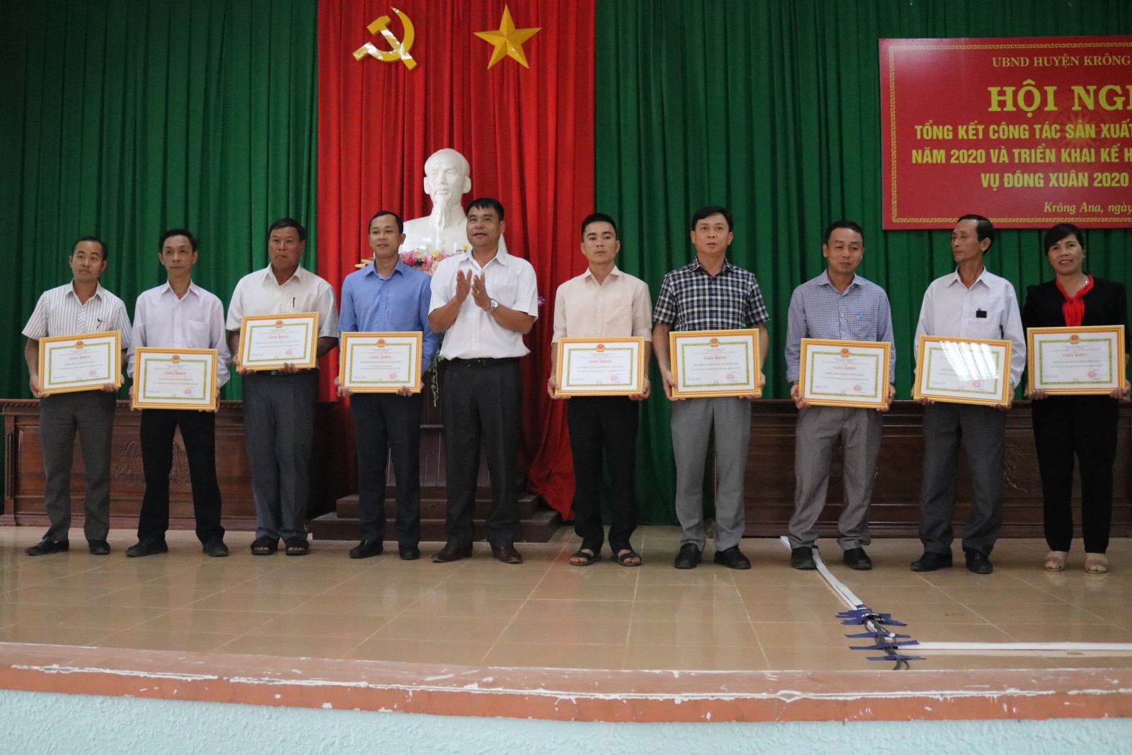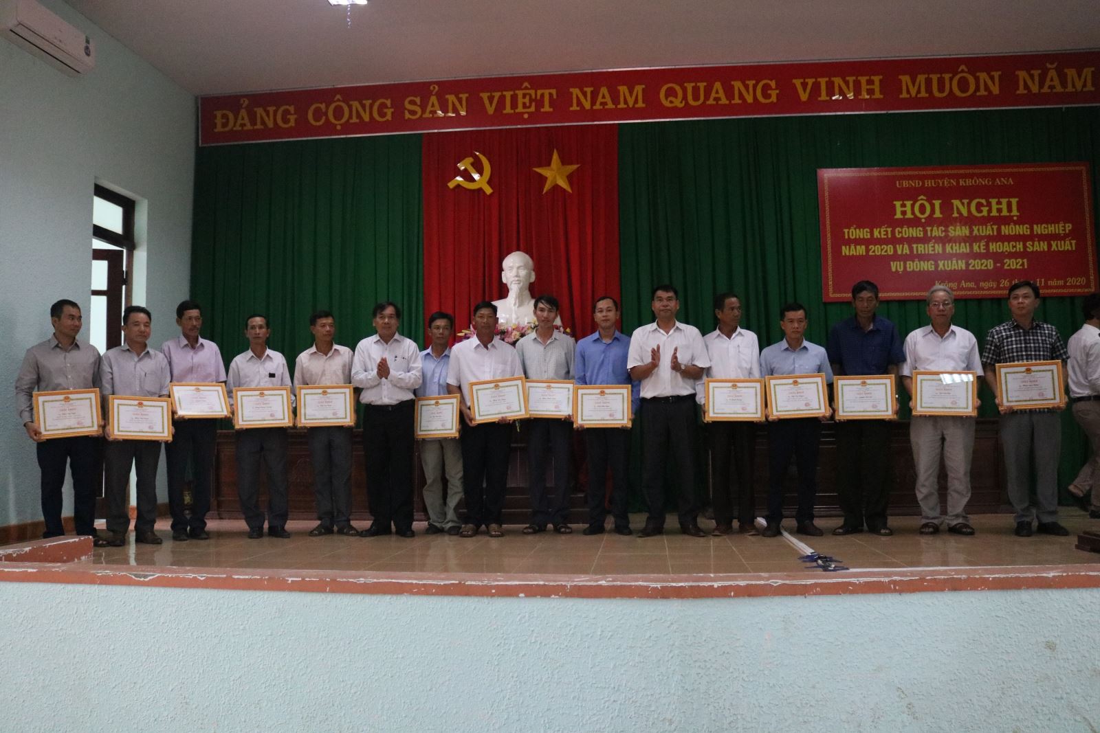 Nhân dịp này, UBND huyện đã tặng giấy khen cho các tập thể và cá nhân có thành tích xuất sắc trong công tác chỉ đạo và tổ chức thực hiện sản xuất nông nghiệp năm 2020.