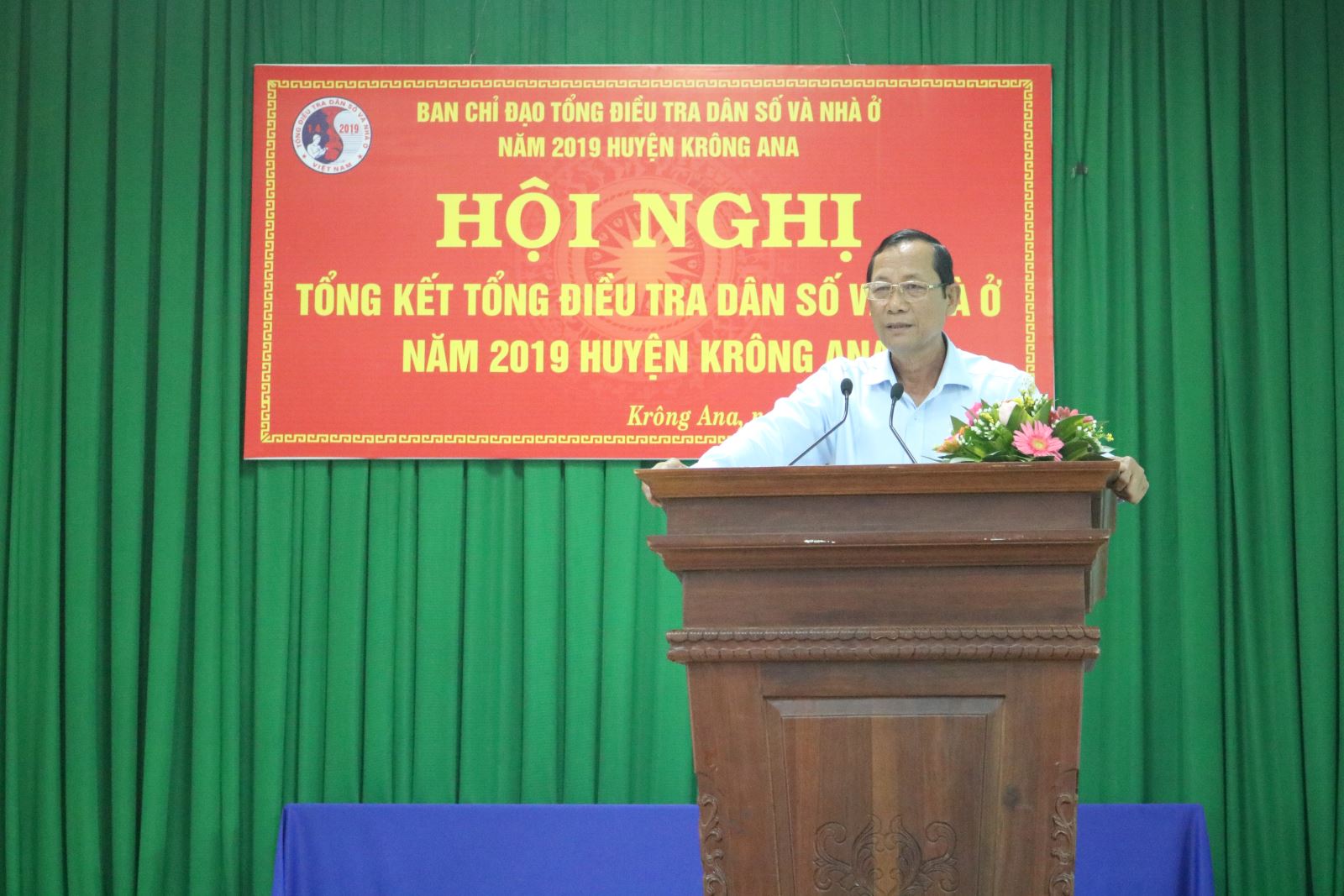Sáng ngày 17/9/2019, Ban Chỉ đạo Tổng điều tra dân số và nhà ở huyện Krông Ana đã tổ chức Hội nghị Tổng kết Tổng điều tra dân số và nhà ở năm 2019. Ông Trần Hữu Thọ - Phó Chủ tịch UBND huyện, Trưởng ban Chỉ đạo tổng điều tra dân số và nhà ở huyện chủ trì hội nghị. Tham dự Hội nghị có ông Đỗ Tấn Xuân, Cục trưởng Cục Thống kê Đắk Lắk, Phó trưởng Ban Chỉ đạo tỉnh; ông Y Nem Buôn Krông, Phó Bí thư Huyện ủy - Chủ tịch HĐND huyện; các thành viên Ban Chỉ đạo Tổng điều tra dân số và nhà ở của huyện; đại diện Ban Chỉ đạo Tổngđiều tra dân số và nhà các xã, thị trấn.