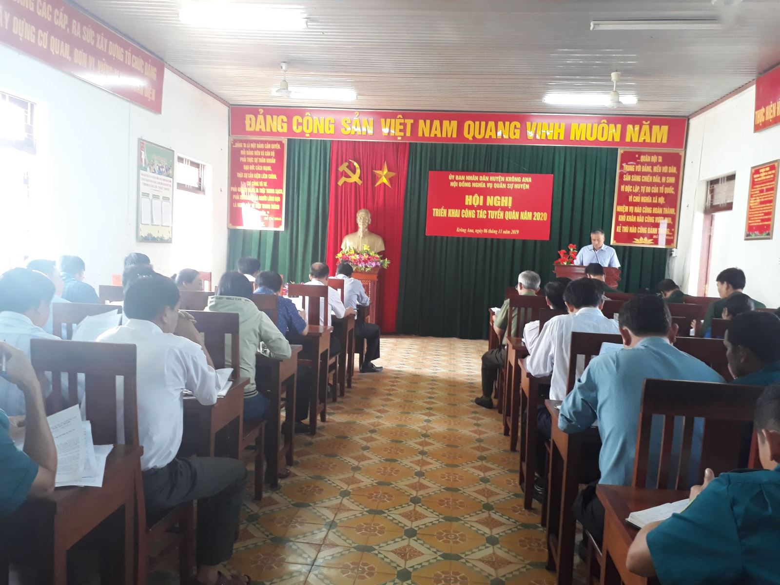 Ngày 06/11/2019, Hội đồng nghĩa vụ quân sự (HĐNVQS) huyện Krông Ana đã tổ chức Hội nghị triển khai công tác tuyển Quân năm 2020. Tham dự Hội nghị có đồng chí Nguyễn Kính – Bí thư Huyện ủy; đồng chí Võ Đại Huế - Chủ tịch UBND huyện, Chủ tịch HĐNVQS huyện; các ông, bà là thành viên HĐNVQS huyện và đại diện lãnh đạo các ngành, đoàn thể của huyện và HĐNVQS các xã, thị trấn.