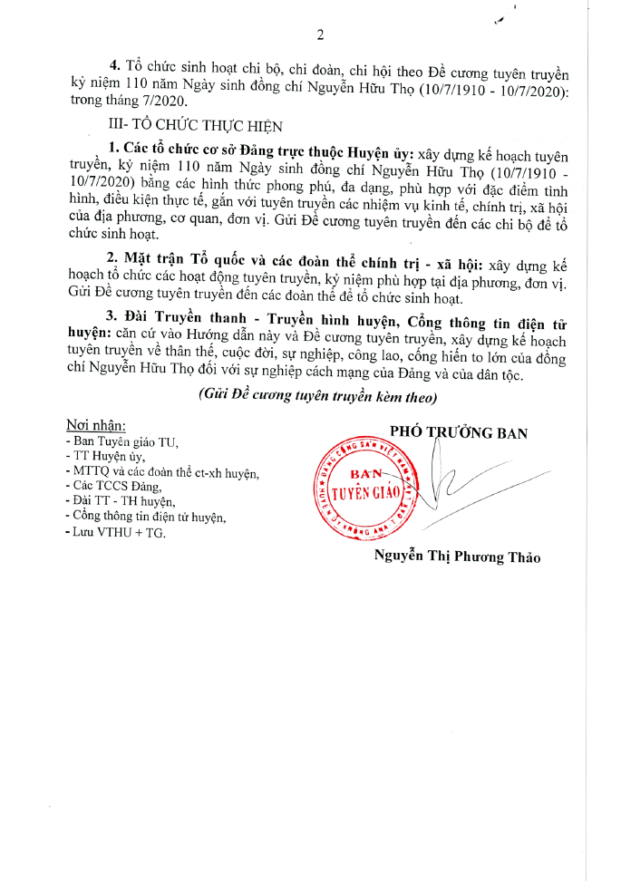 Hướng dẫn tuyên truyền, kỷ niệm 110 năm Ngày sinh đồng chí Nguyễn Hữu Thọ (10/7/1910-10/7/2020)