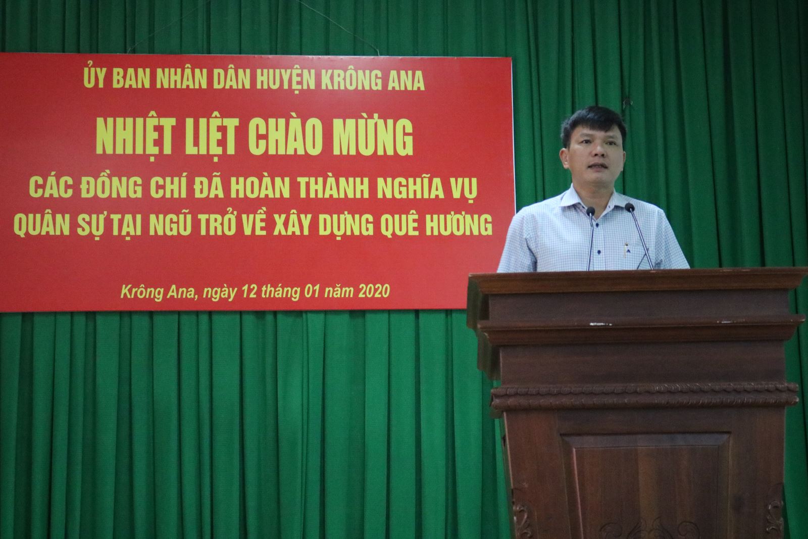 Phát biểu chúc mừng cùng các quân nhân xuất ngũ trở về địa phương, ông Nguyễn Minh Đông, Huyện ủy viên, Phó Chủ tịch UBND huyện đánh giá cao sự tiến bộ, trưởng thành về nhiều mặt của các chiến sĩ qua thời gian rèn luyện, công tác, học tập trong môi trường quân đội. Tại buổi lễ ông Nguyễn Minh Đông cũng vui mừng thông báo những kết quả trên các lĩnh vực kinh tế - văn hóa, xã hội, đảm bảo quốc phòng - an ninh mà huyện đạt được trong thời gian qua, qua đó nhắn nhủ và hy vọng khi về với địa phương, các quân nhân xuất ngũ sẽ tiếp tục phát huy những thành tích, kinh nghiệm đã tích lũy để đóng góp vào công cuộc xây dựng đất nước, địa phương. Phát huy tinh thần, hình ảnh tốt đẹp của "Anh Bộ đội Cụ Hồ" gương mẫu, tham gia lao động sản xuất, làm giàu cho gia đình và cho quê hương, tích cực tham gia giữ gìn an ninh trật tự tại địa phương; thực hiện tốt trách nhiệm của dự bị động viên sẵn sàng nhận nhiệm vụ lên đường bảo vệ Tổ quốc khi có yêu cầu. Các cấp, các ngành của huyện cần có nhiều sự quan tâm giúp quân nhân xuất ngũ về địa phương được tham gia đào tạo nghề, giải quyết việc làm để ổn định cuộc sống.