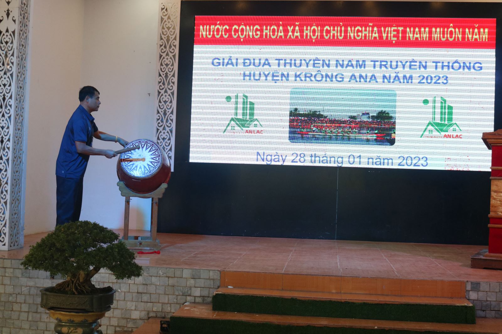 Trong không khí cả nước chào mừng kỷ niệm 93 năm Ngày thành lập Đảng Cộng sản Việt Nam (03/02/1930 - 03/02/2023) mừng Xuân Quý Mão 2023. Sáng ngày 28/01/2023 (mùng 7 tháng giêng năm Quý Mão 2023), tại Khu du lịch sinh thái Hồ Sen, thị trấn Buôn Trấp, huyện Krông Ana, hàng ngàn khán giả huyện nhà cùng du khách trong và ngoài tỉnh đã đến xem và cỗ vũ cho Lễ hội đua thuyền nam truyền thống huyện Krông Ana năm 2023. Hội đua thuyền là nét đẹp văn hóa truyền thống, niềm tự hào của người dân địa phương để giao lưu, rèn luyện sức khỏe, đồng thời cầu mong cho Nhân dân được bình an, mùa màng tươi tốt.