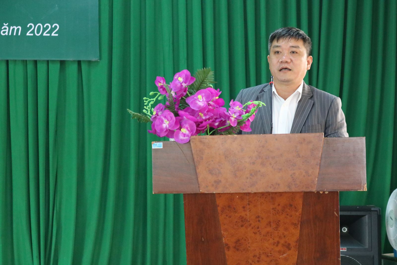 Ông Nguyễn Thanh Vũ, Chủ tịch UBND huyện phát biểu tại buổi lễ