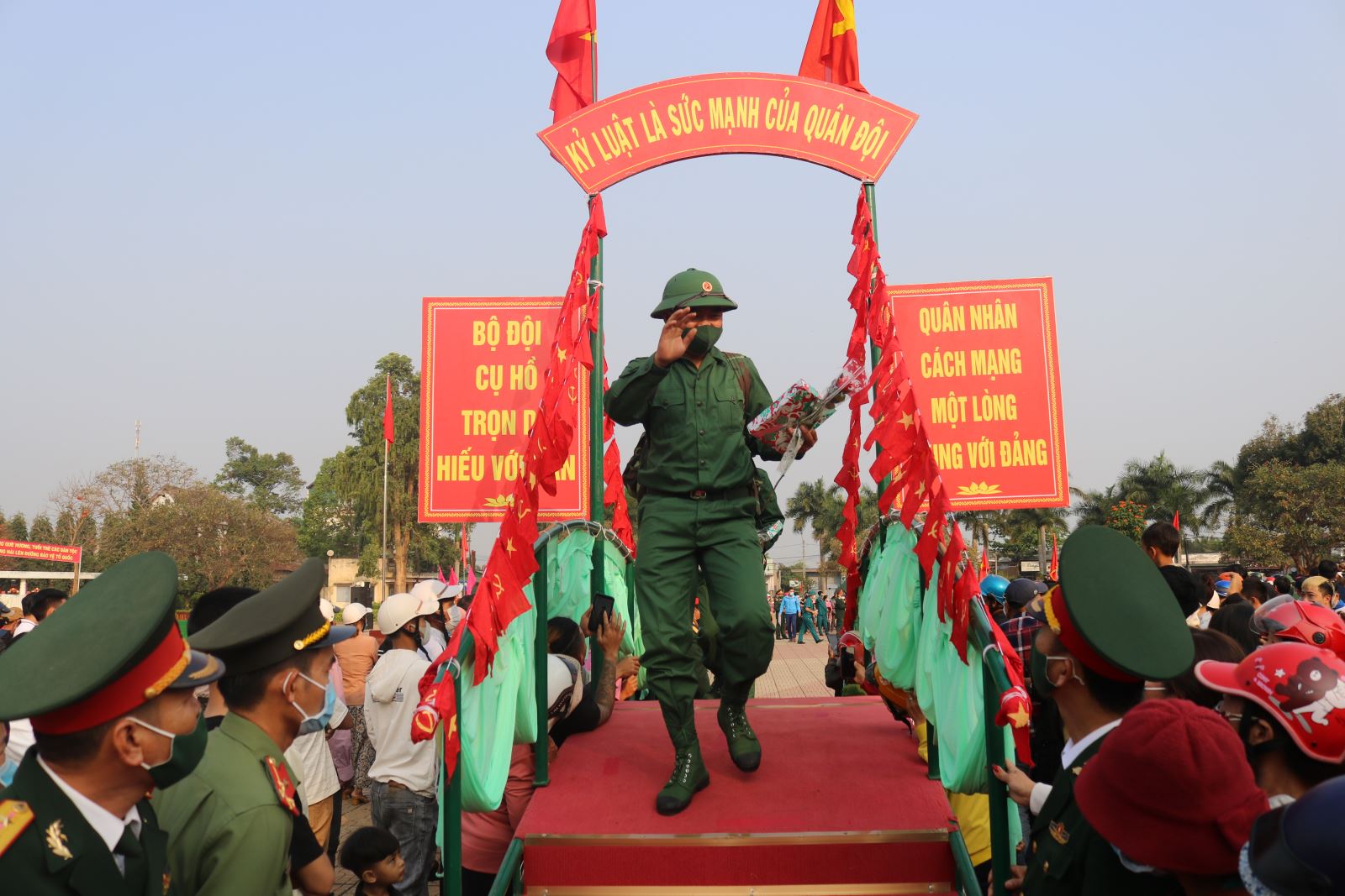 Tại buổi lễ, các cấp ủy Đảng, Chính quyền địa phương đã động viên và mong các tân binh lên đường nhập ngũ sẽ tiếp bước cha anh, phát huy truyền thống anh hùng, hăng say lên đường làm nhiệm vụ bảo vệ Tổ quốc; trong thời gian tại ngũ tích cực ra sức phấn đấu cống hiến sức trẻ cho Tổ quốc, hoàn thành xuất sắc mọi nhiệm vụ được giao.