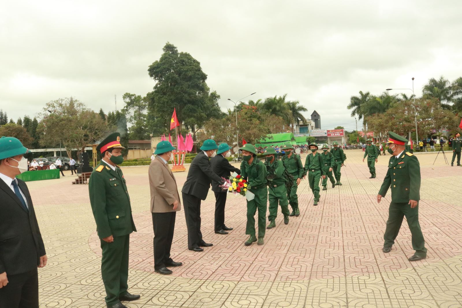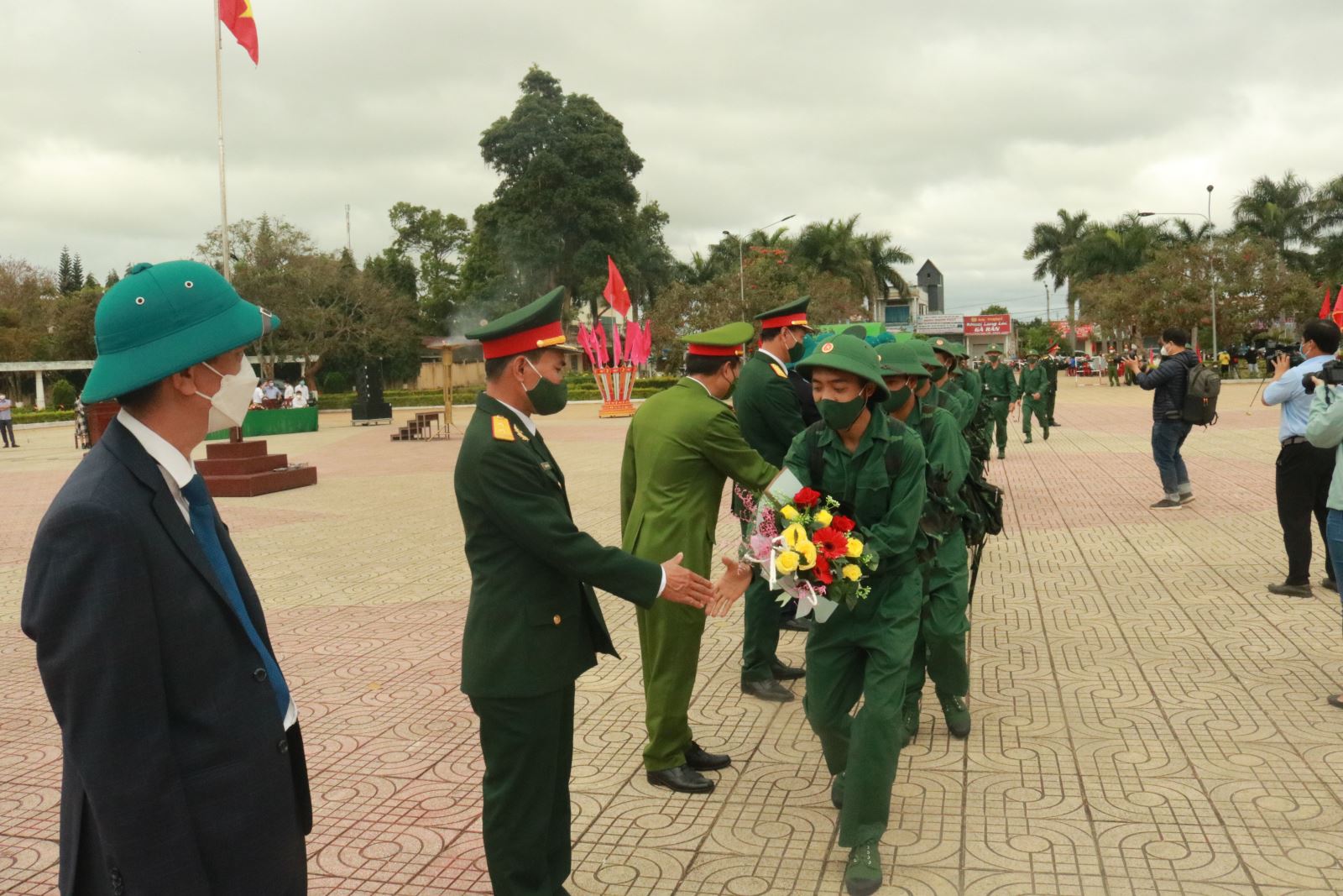 Lãnh đạo huyện tặng hoa và quà cho các tân binh lên đường nhập ngũ