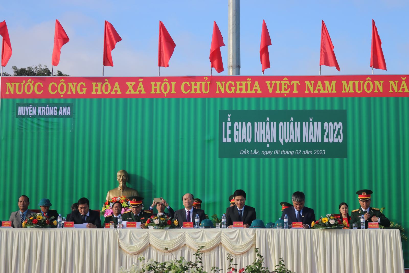 Sáng ngày 08/02/2023, tại Quảng trường Hoa viên huyện Krông Ana, Hội đồng nghĩa vụ quân sự huyện đã long trọng tổ chức Lễ giao, nhận quân năm 2023. Tham dự buổi Lễ có đồng chí Phạm Ngọc Nghị, Chủ tịch UBND tỉnh, Chủ tịch HĐNVQS sự tỉnh; đồng chí Bùi Văn Yên, Giám đốc Sở Tài chính, thành viên HĐNVQS tỉnh; đồng chí Phan Thanh Tâm, Phó Chỉ huy trưởng Bộ CHQS tỉnh; đồng chí Nguyễn Kính, Bí thư Huyện ủy, Chủ tịch HĐND huyện; đồng chí Y’ Nem Buôn Krông - Phó Bí thư Thường trực Huyện ủy; đồng chí Nguyễn Thanh Vũ, Chủ tịch UBND huyện, Chủ tịch HĐNVQS sự huyện; thành viên Hội đồng NVQS huyện; đại diện Đảng ủy, HĐND, UBND, Hội đồng NVQS các xã, thị trấn cùng 158 thanh niên lên đường nhập ngũ năm 2023.