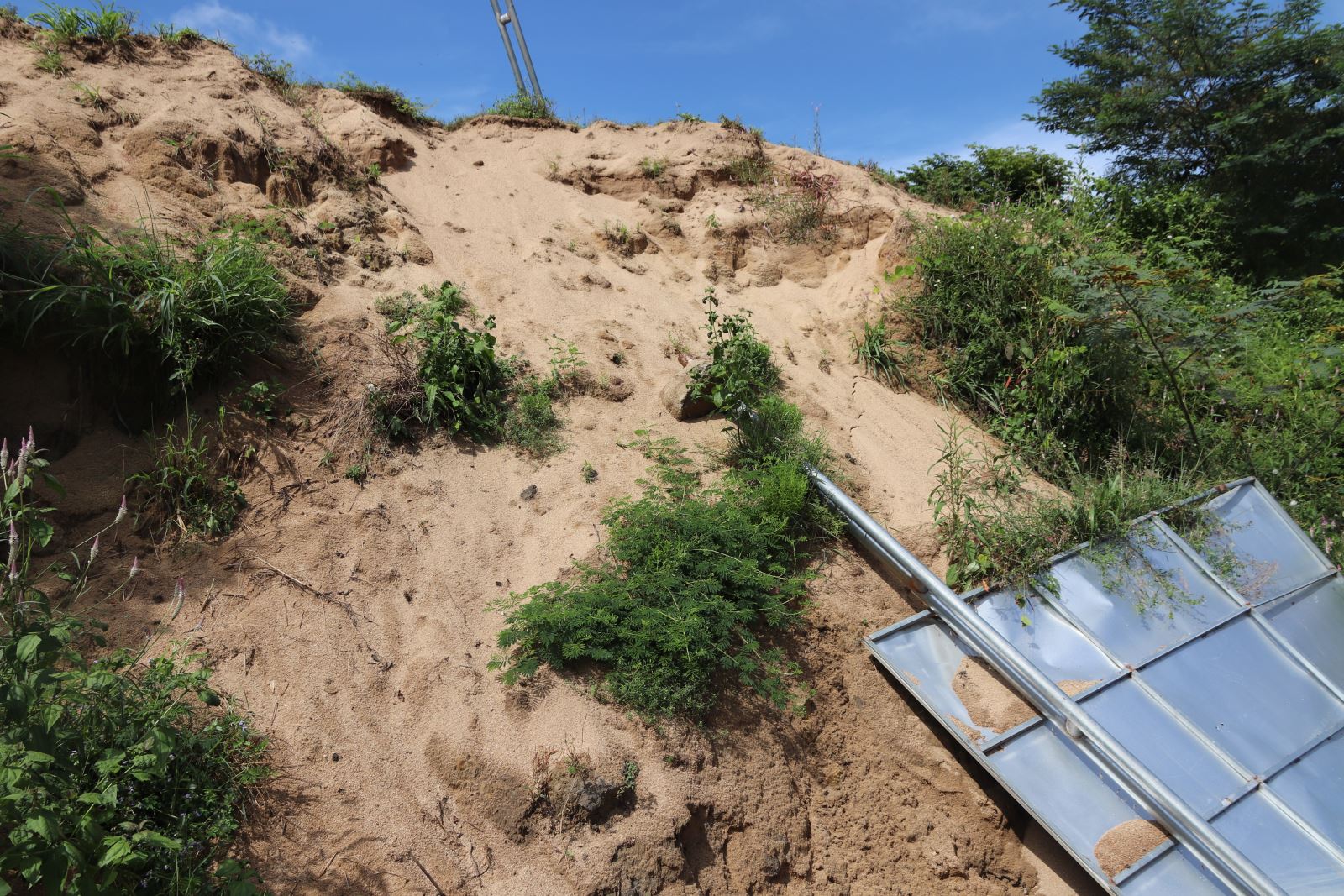 Biển báo khu vực sạt lở thôn 6 xã Bình Hòa bị sập và gãy