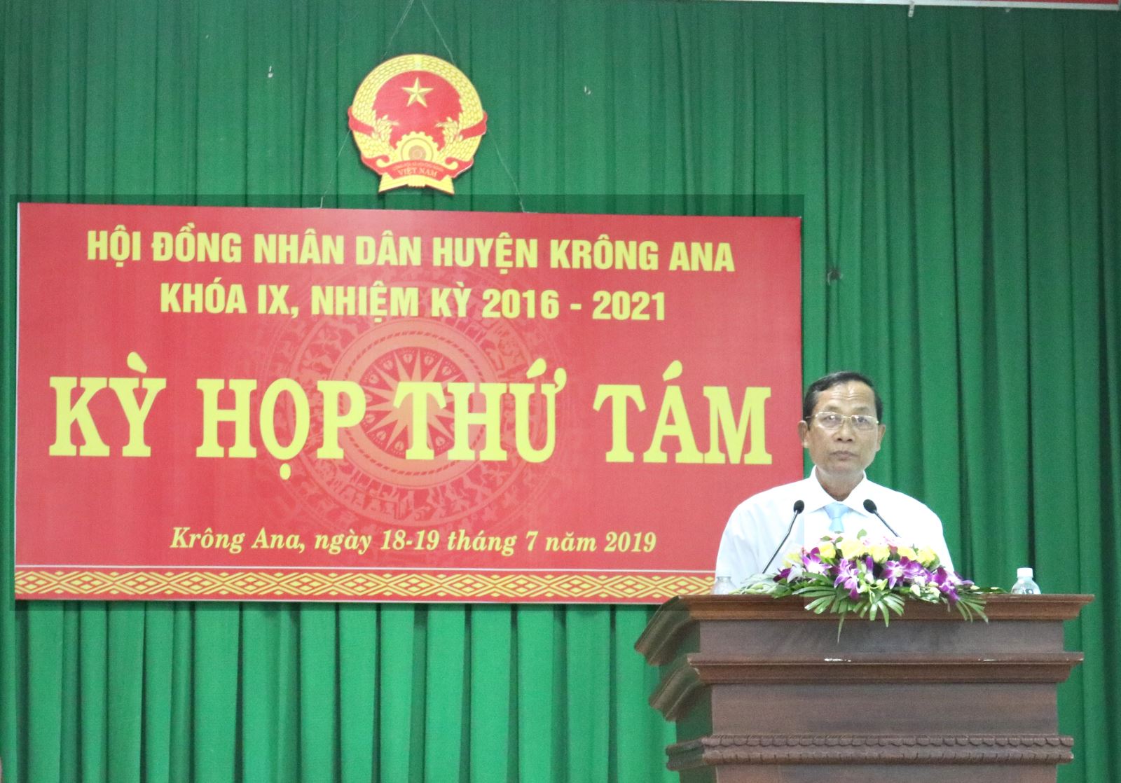 Ngày 18/7/2019, HĐND huyện Krông Ana khóa IX, nhiệm kỳ 2016-2021 đã tổ chức kỳ họp thứ Tám. Tham dự kỳ họp có ông Nguyễn Kính - Bí thư Huyện ủy; ông Y Nem Buôn Krông - Chủ tịch HĐND huyện; ông Võ Đại Huế - Chủ tịch UBND huyện; ông Nguyễn Năng Lưu - Chủ tịch Ủy ban MTTQ Việt Nam huyện; các ông, bà trong Ban Thường vụ Huyện ủy, Thường trực HĐND, UBND huyện, UBMTTQVN huyện; các ông, bà đại biểu HĐND huyện khóa IX; đại diện lãnh đạo các cơ quan, ban, ngành, đoàn thể của huyện; Chủ tịch HĐND, UBND các xã, thị trấn; đại diện cử tri xã Ea Na và xã Dray Sáp.