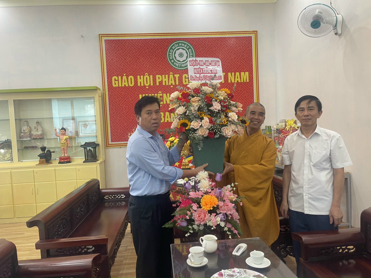 Nhân dịp Đại lễ Phật đản (Phật lịch 2567 - Dương lịch 2023), ngày 29/5//2023 lãnh đạo Huyện ủy, HĐND, UBND, UBMTQ Việt Nam huyện đã tổ chức 02 đoàn do đồng chí Nguyễn Kính - Bí thư Huyện ủy và đồng chí Nguyễn Thanh Vũ - Chủ tịch UBND huyện làm trưởng đoàn đến thăm và chúc mừng các cơ sở Phật giáo trên địa bàn huyện.
