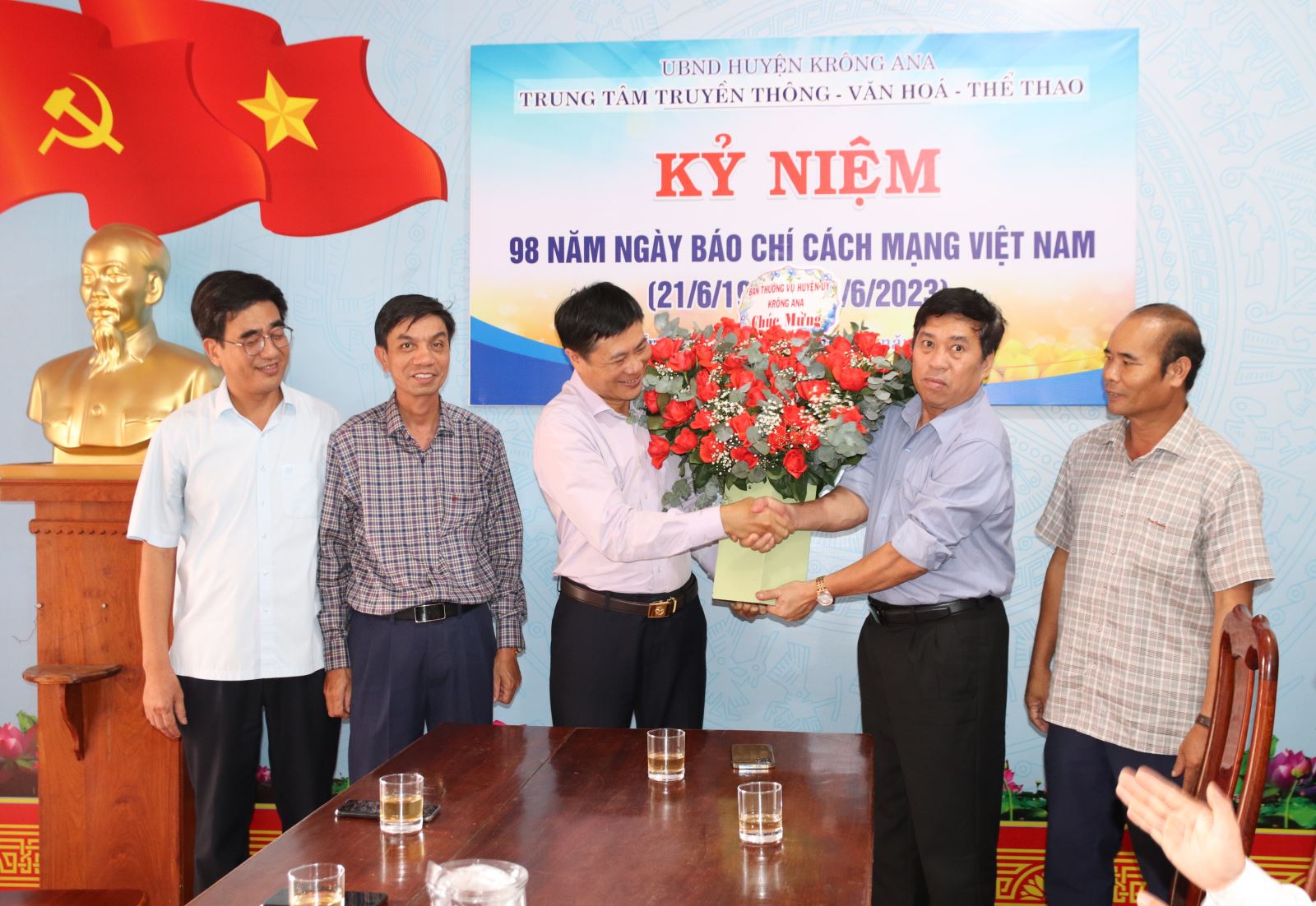 Ngày 20/6/2023, lãnh đạo Thưòng trực Huyện ủy, HĐND, UBND, UBMTTQ Việt Nam huyện đã đến thăm và chúc mừng cán bộ, viên chức, người lao động Trung tâm Truyền thông - Văn hóa - Thể thao huyện nhân dịp kỷ niệm 98 năm Ngày Báo chí cách mạng Việt Nam (21/6/1925 - 21/6/2023).