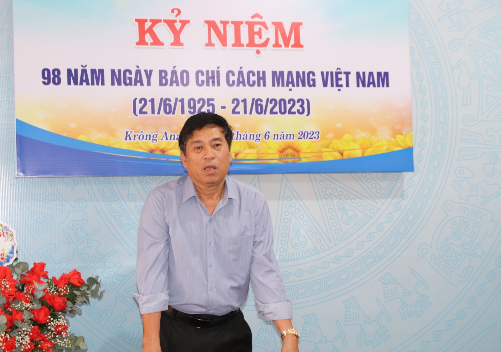 Tại buổi đến thăm, thay mặt Thường trực Huyện ủy, HĐND, UBND, UBMTTQVN huyện, đồng chí Nguyễn Kính - Bí thư Huyện ủy, Chủ tịch HĐND huyện đã tặng hoa chúc mừng cán bộ, viên chức, người lao động Trung tâm Truyền thông - Văn hóa - Thể thao huyện nhân dịp kỷ niệm 98 năm Ngày báo chí cách mạng Việt Nam. Đồng thời biểu dương những thành tích của đội ngũ cán bộ, viên chức, người lao động Trung tâm Truyền thông - Văn hóa - Thể thao huyện trong thời gian qua và nhấn mạnh: Trong quá trình thực hiện nhiệm vụ, Trung tâm Truyền thông - Văn hóa - Thể thao huyện cần bám sát Nghị quyết Đại hội lần thứ X của Đảng bộ huyện, các chỉ tiêu, nhiệm vụ của Ban chấp hành Huyện ủy và UBND huyện để tuyên truyền, tiếp tục đổi mới nội dung, hình thức tuyên truyền, đảm bảo phục vụ ngày càng tốt hơn nhu cầu thông tin của các tầng lớp nhân dân, qua đó cổ vũ, động viên cán bộ và nhân dân các dân tộc tiếp tục phát huy truyền thống anh hùng cách mạng, thi đua lập thành tích chào mừng các ngày lễ lớn của đất nước.