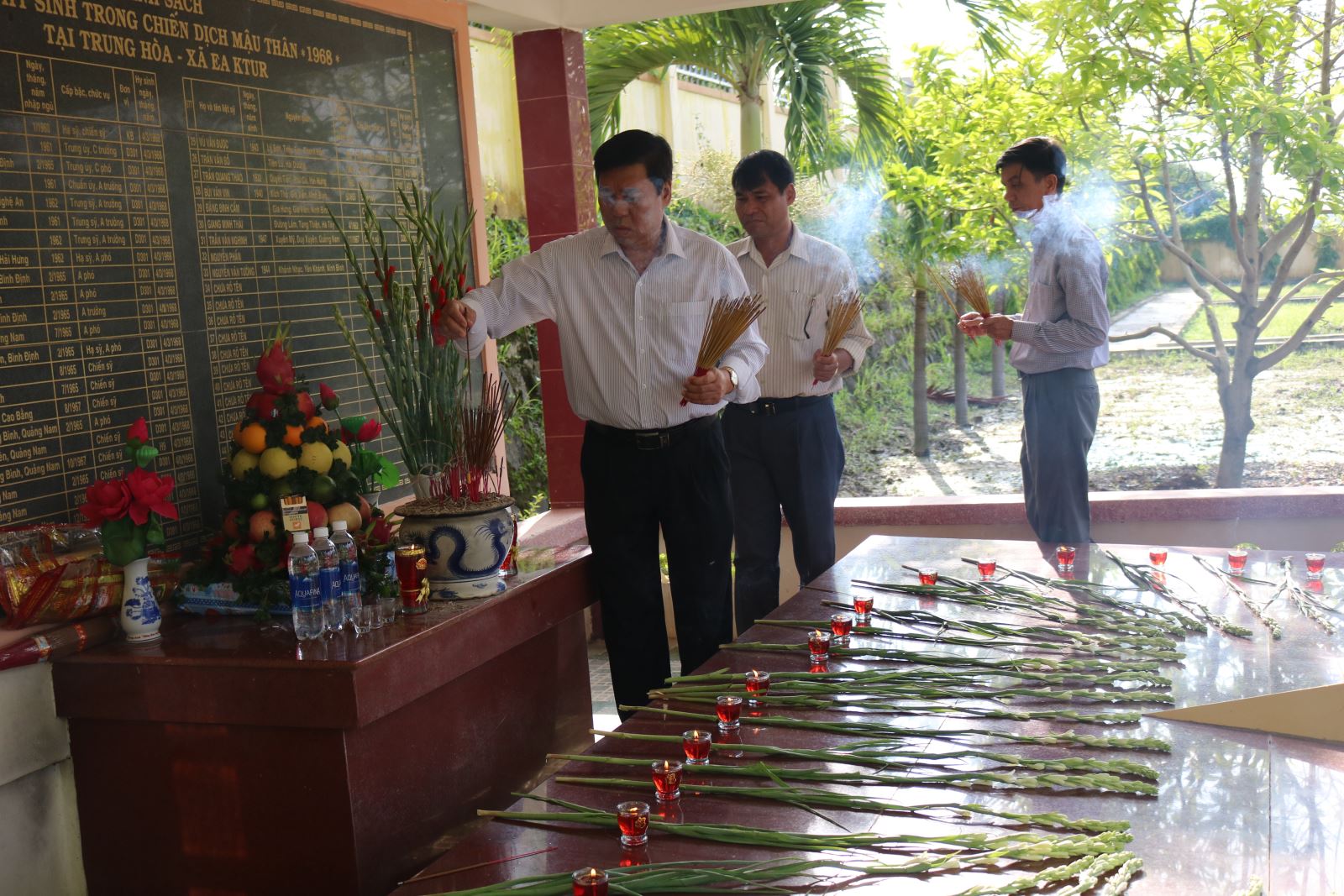 Nhân kỷ niệm 73 năm Ngày Thương binh liệt sỹ (27/7/1947-27/7/2020), Huyện ủy, HĐND, UBND, UBMTTQ Việt Nam huyện và cán bộ, công chức, viên chức, người lao động các Phòng, ban, ngành, đoàn thể, các đơn vị lực lượng vũ trang của huyện; đại diện Đảng ủy, Thường trực HĐND, UBND, UBMTTQ Việt Nam và cán bộ, công chức của UBND thị trấn Buôn Trấp; Hội Cựu chiến binh huyện; cán bộ, giáo viên và các em học sinh trường THCS Lương Thế Vinh, thị trấn Buôn Trấp đã đến dâng hương, đặt vòng hoa tưởng nhớ các Anh hùng liệt sỹ tại Nghĩa trang liệt sỹ huyện.