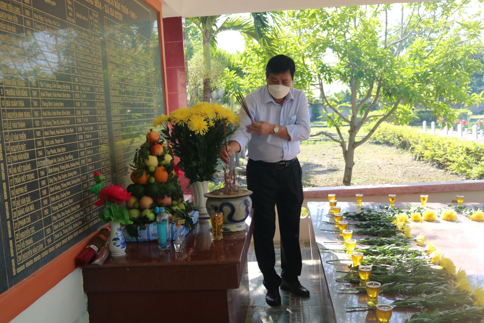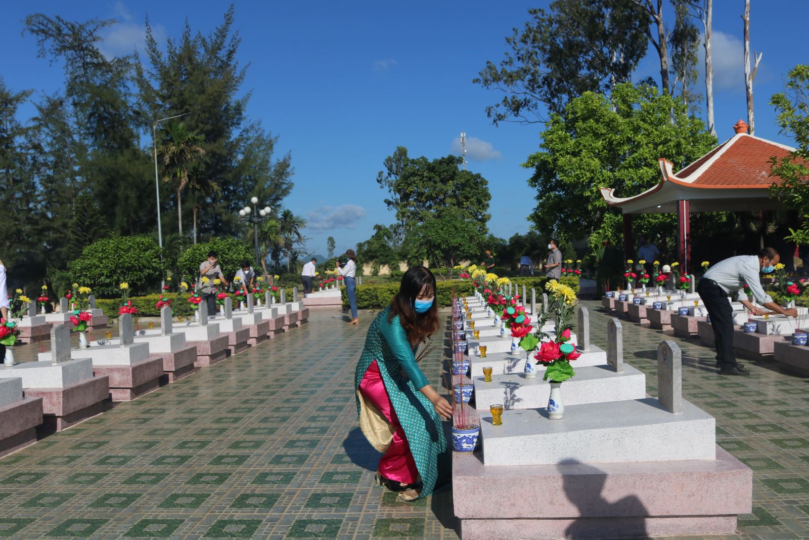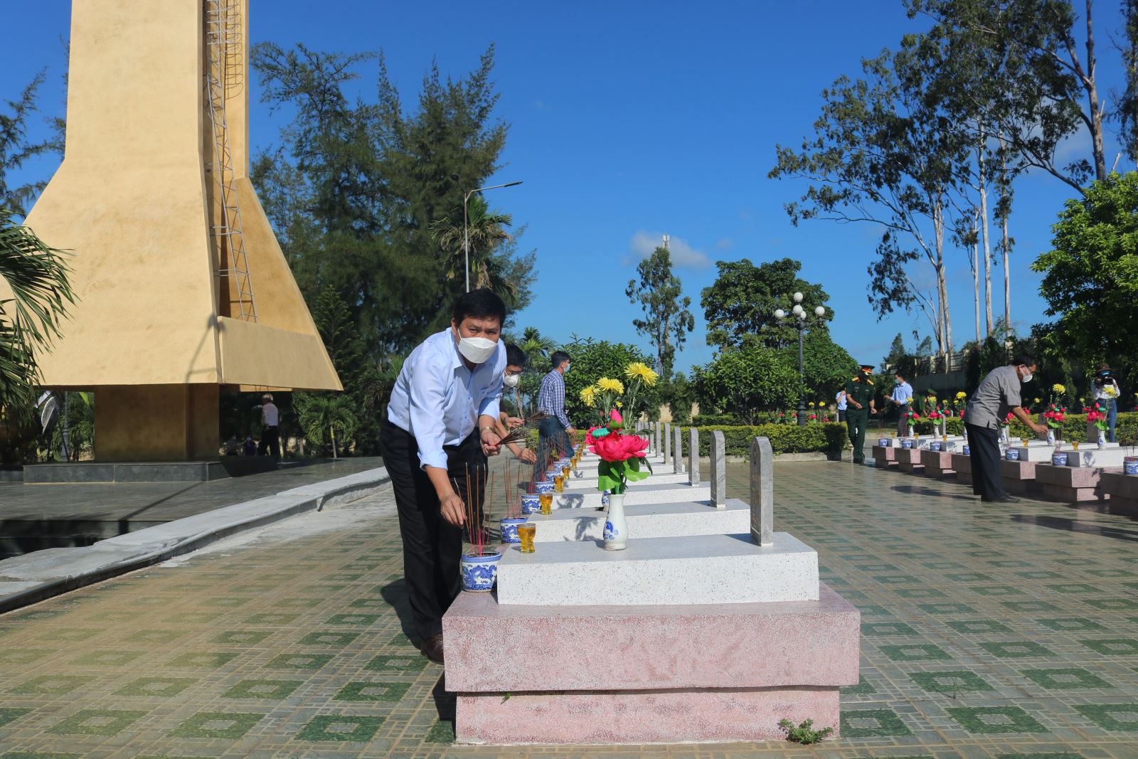 Sau phần Nghi lễ, các đồng chí lãnh đạo huyện đã đến thắp hương từng phần mộ để tỏ lòng biết ơn với các thế hệ cha ông đã cống hiến sức trẻ cho nền độc lập dân tộc.