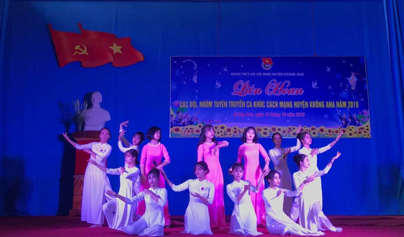 Hoà chung với không khí tưng bừng, phấn khởi của tuổi trẻ tỉnh Đắk Lắk nói chung và tuổi trẻ huyện Krông Ana nói riêng đang ra sức thi đua lập thành tích chào mừng kỷ niệm 50 năm thực hiện Di chúc của Chủ tịch Hồ Chí Minh (1969-2019), kỷ niệm 63 năm Ngày Truyền thống Hội LHTN Việt Nam (15/10/1956 - 15/10/2019) và tiến tới Chào mừng Đại hội đại biểu Hội LHTN Việt Nam tỉnh Đắk Lắk lần thứ VIII, nhiệm kỳ 2019-2024. Ngày 15/10/2019, BTV Huyện Đoàn Krông Ana tổ chức Liên hoan các Đội, nhóm tuyên truyền ca khúc cách mạng huyện Krông Ana năm 2019.