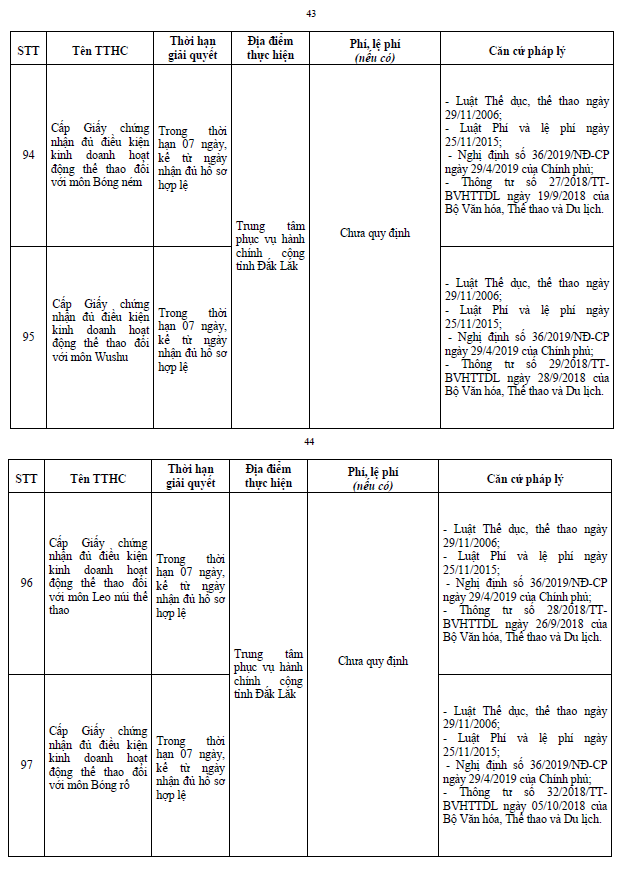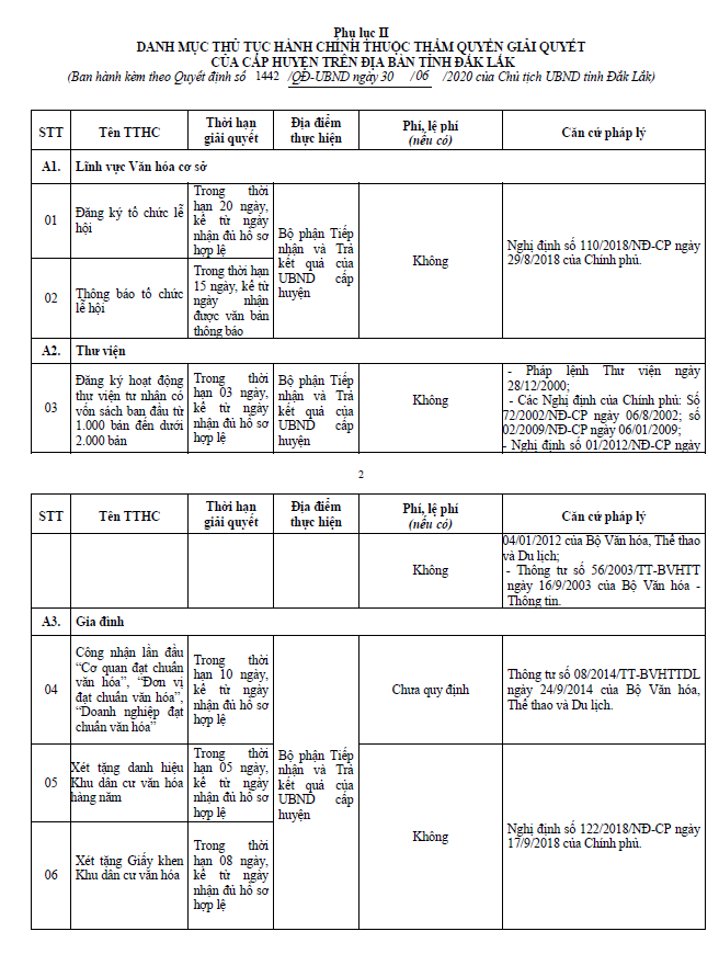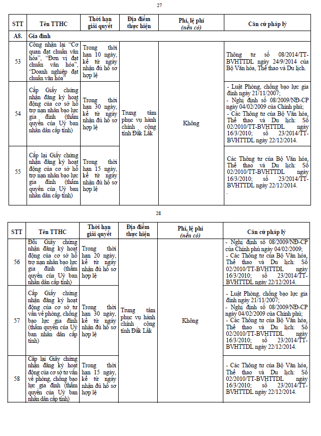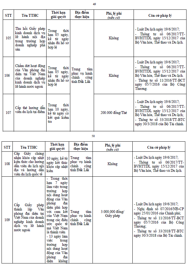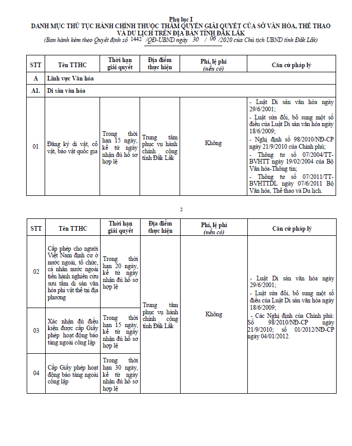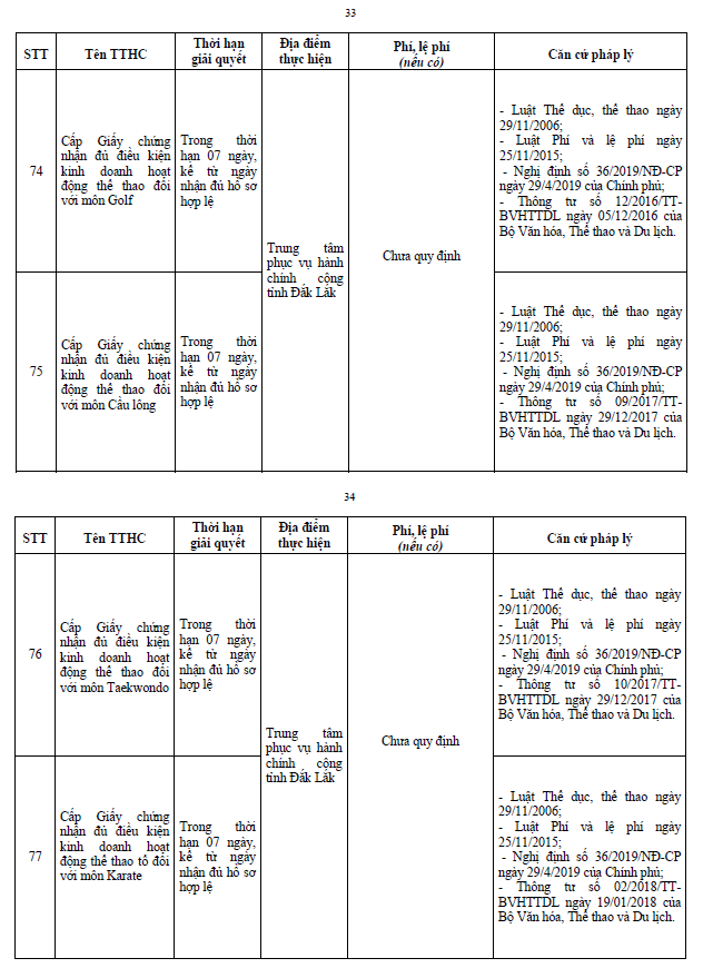 Quyết định công bố Danh mục TTHC thuộc lĩnh vực văn hóa, thể thao, du lịch thuộc thẩm quyền của Sở văn hóa, thể thao, du lịch, cấp huyện, cấp xã trên địa bàn tỉnh Đắk Lắk