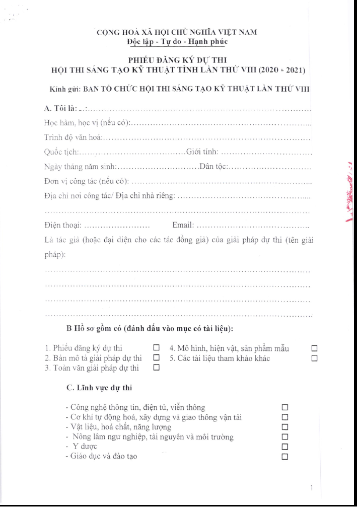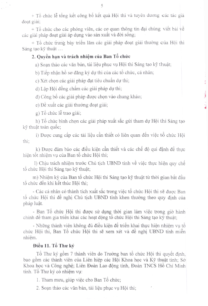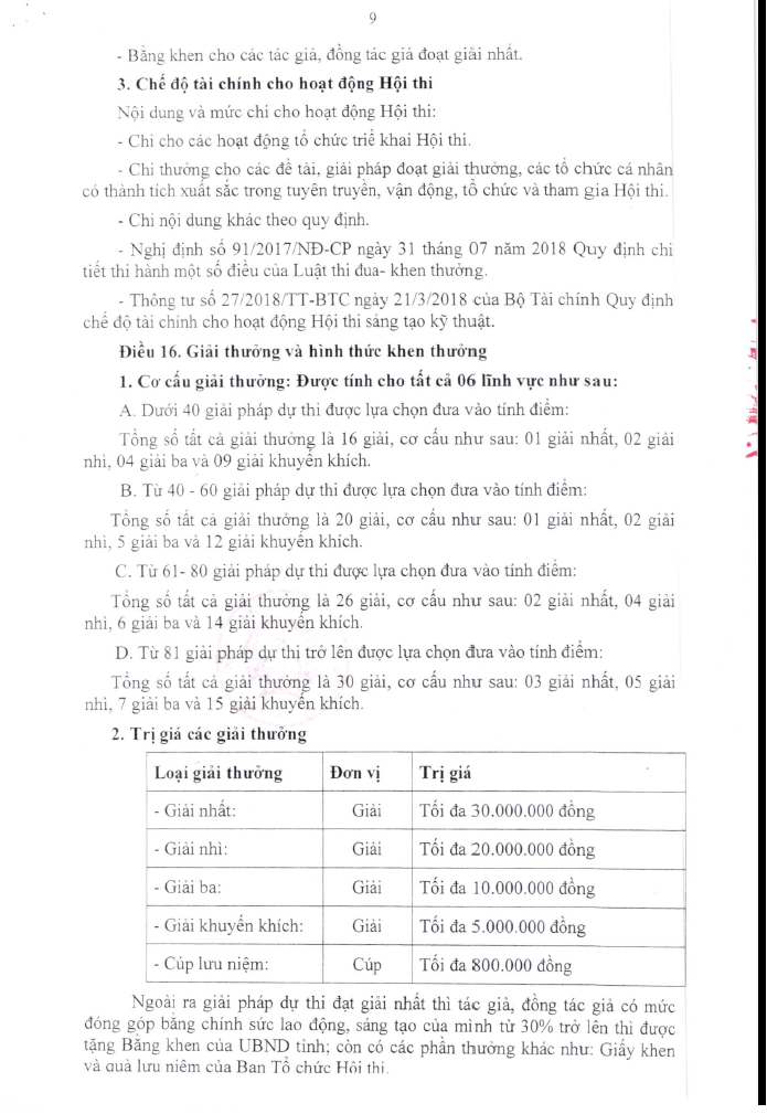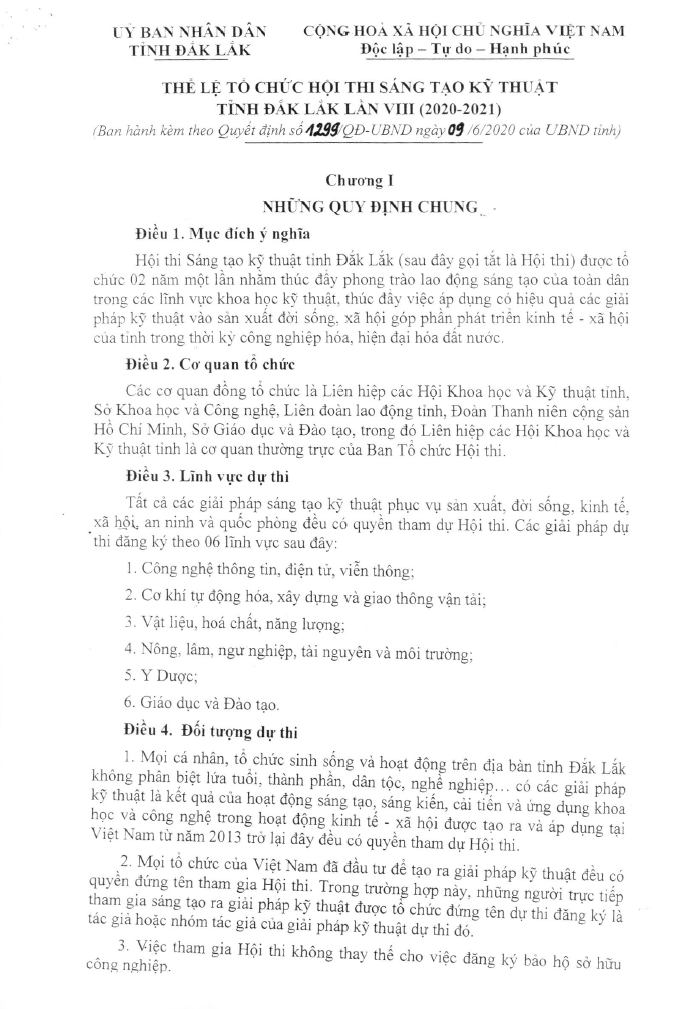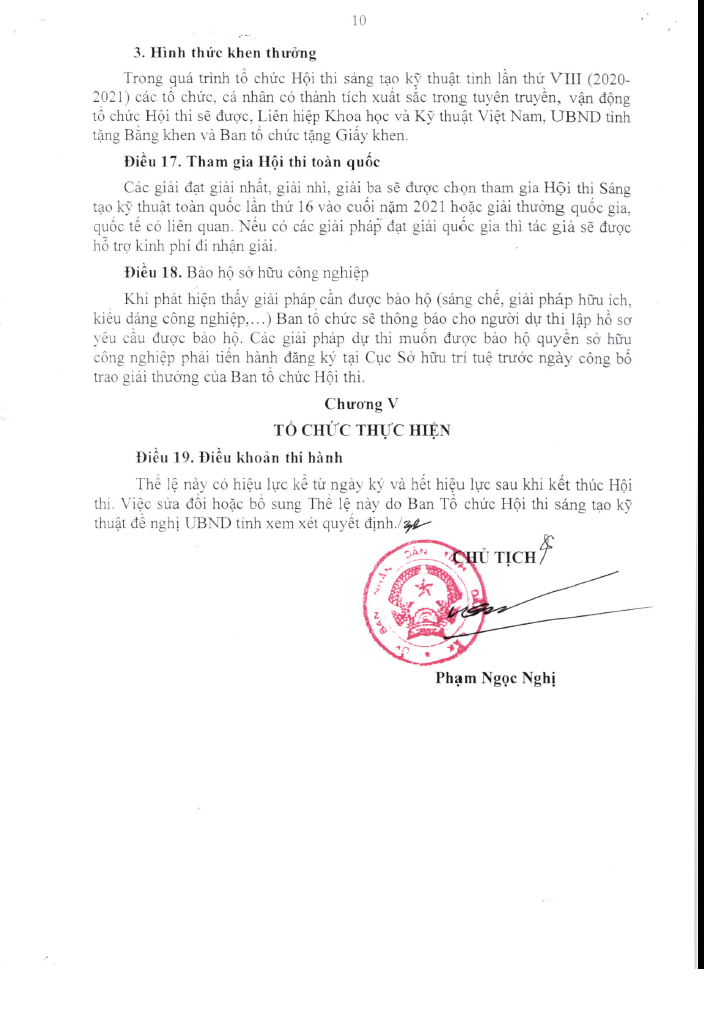 Quyết định về việc ban hành Thể lệ tổ chức Hội thi sáng tạo kỹ thuật tỉnh lần thứ VIII (2020-2021)