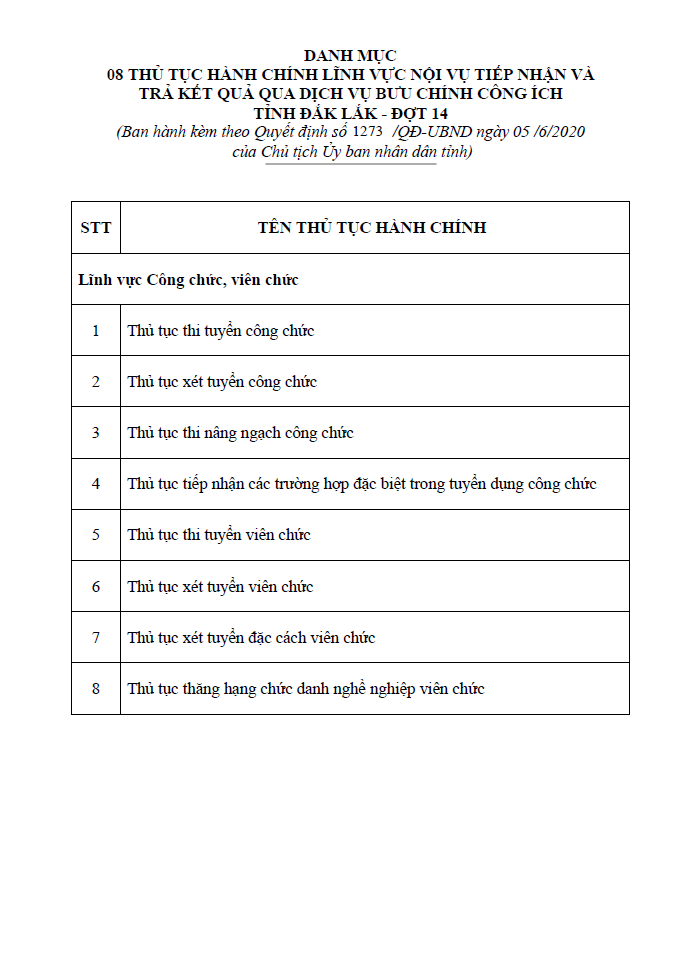 QUYẾT ĐỊNH Về việc công bố Danh mục thủ tục hành chính thực hiện tiếp nhận và trả kết quả tại Trung tâm Phục vụ hành chính công tỉnh Đắk Lắk - Đợt 4