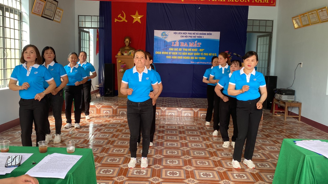 Câu lạc bộ “Phụ nữ Khỏe - Đẹp” thôn 01, xã Quảng Điền được thành lập có 14 thành viên tham gia và chị Lê Thị Minh Châu được bầu làm Chủ nhiệm. Câu lạc bộ sẽ hoạt động vào mỗi buổi tối; các chị sẽ tập trung tại Hội trường thôn cùng nhau giao lưu các tiết mục văn nghệ, tập một số điệu nhảy cơ bản. Ngoài ra, còn tổ chức tuyên truyền các chủ trương, chính sách của Đảng và pháp luật của Nhà nước, quy định của địa phương và Hội cấp trên.
