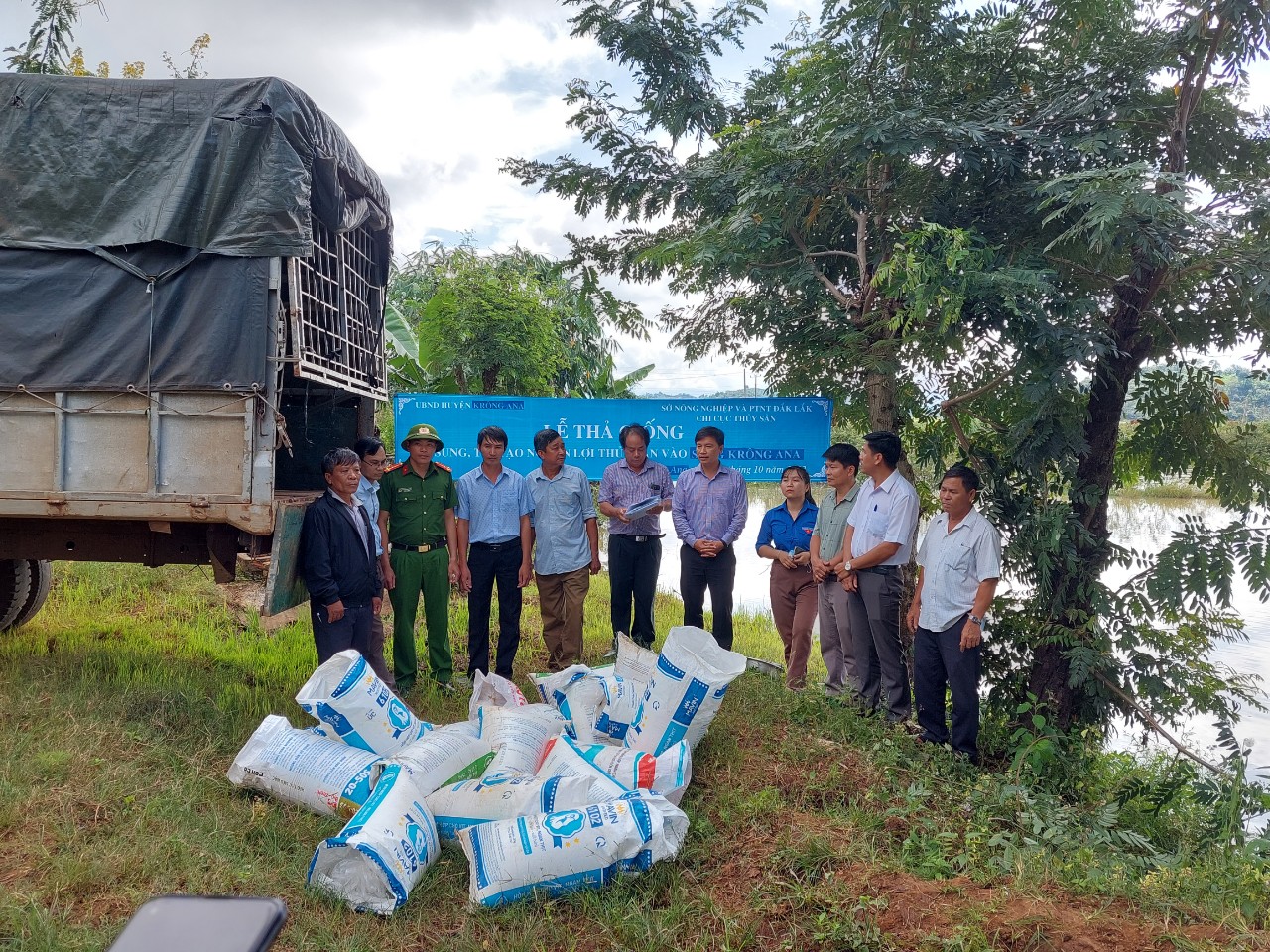 Trong đợt này, Chi cục Thủy sản tỉnh Đắk Lắk thả 7.000 con cá trong đó: Cá trắm cỏ 2.000 con; Cá chép 2.000 con; Cá trôi và Cá Lăng đuôi đỏ 2000.