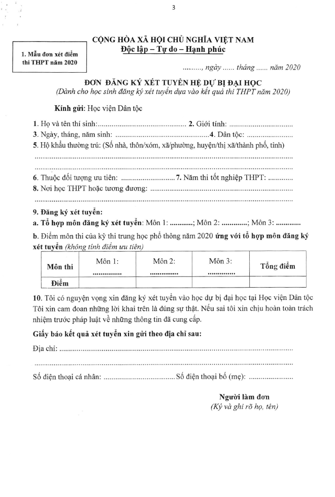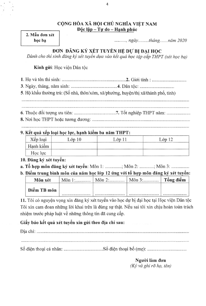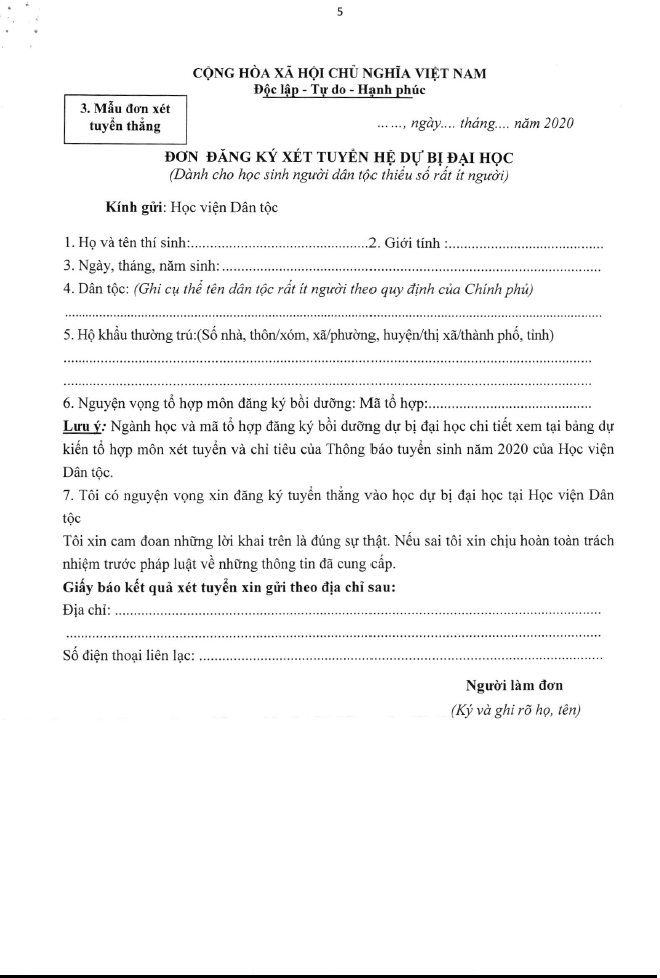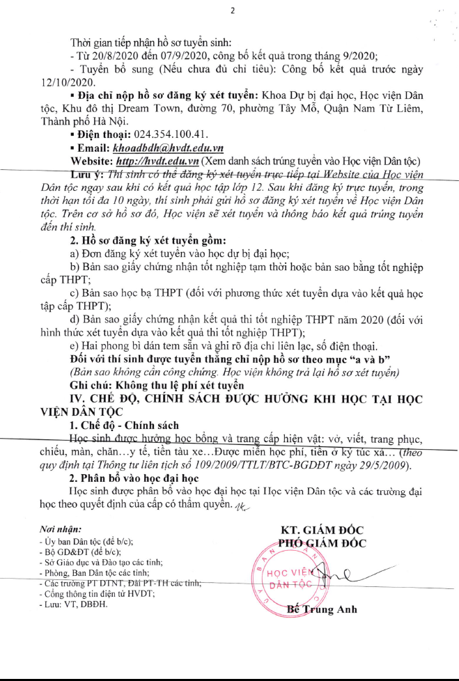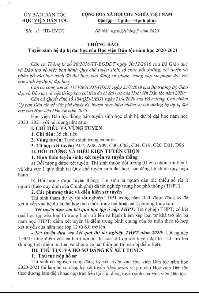 Thông báo tuyển sinh hệ dự bị đại học của Học viện dân tộc năm 2020-2021