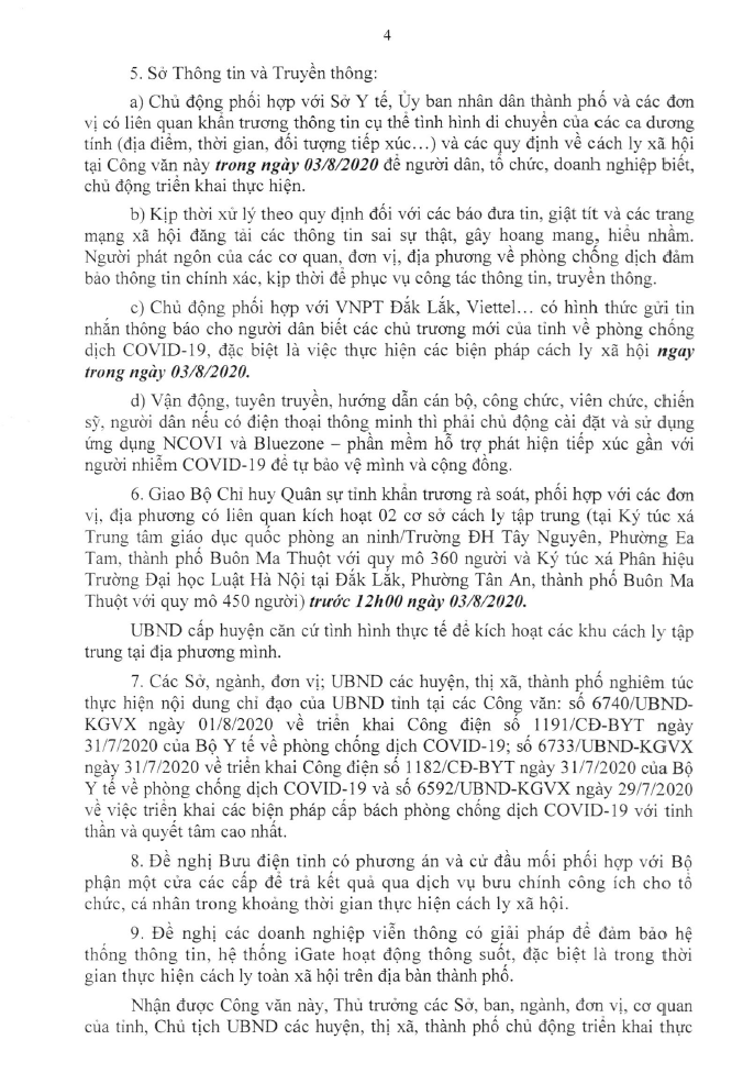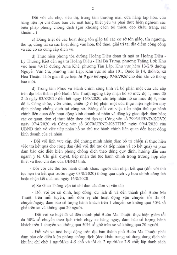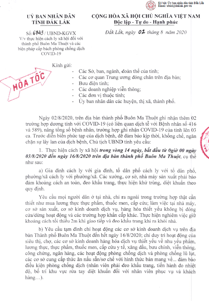 Thực hiện cách ly xã hội đối với thành phố Buôn Ma Thuột và các biện pháp cấp bách phòng, chống dịch Covid-19