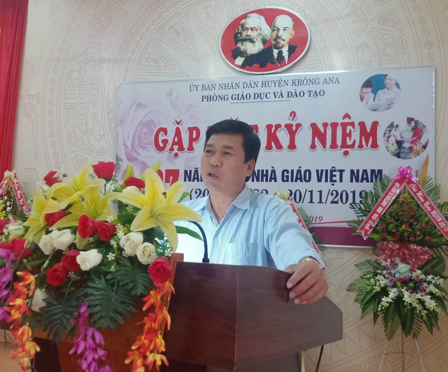 Ngày 19/11/2019, UBND huyện Krông Ana tổ chức Gặp mặt kỷ niệm 37 năm ngày Nhà giáo Việt Nam 20/11 nhằm ôn lại truyền thống “ tôn sư trọng đạo” của dân tộc ta và ghi nhận, tôn vinh công lao to to lớn của các thế hệ nhà giáo trên địa bàn huyện. Về dự buổi tọa đàm có đồng chí Nguyễn Kính – Bí thư Huyện ủy, đồng chí Nguyễn Minh Đông – Phó Chủ tịch UBND huyện, đại diện lãnh đạo các ban, ngành, đoàn thể huyện, đại diện lãnh đạo các xã, thị trấn, đại diện lãnh đạo các trường học trên địa bàn huyện.