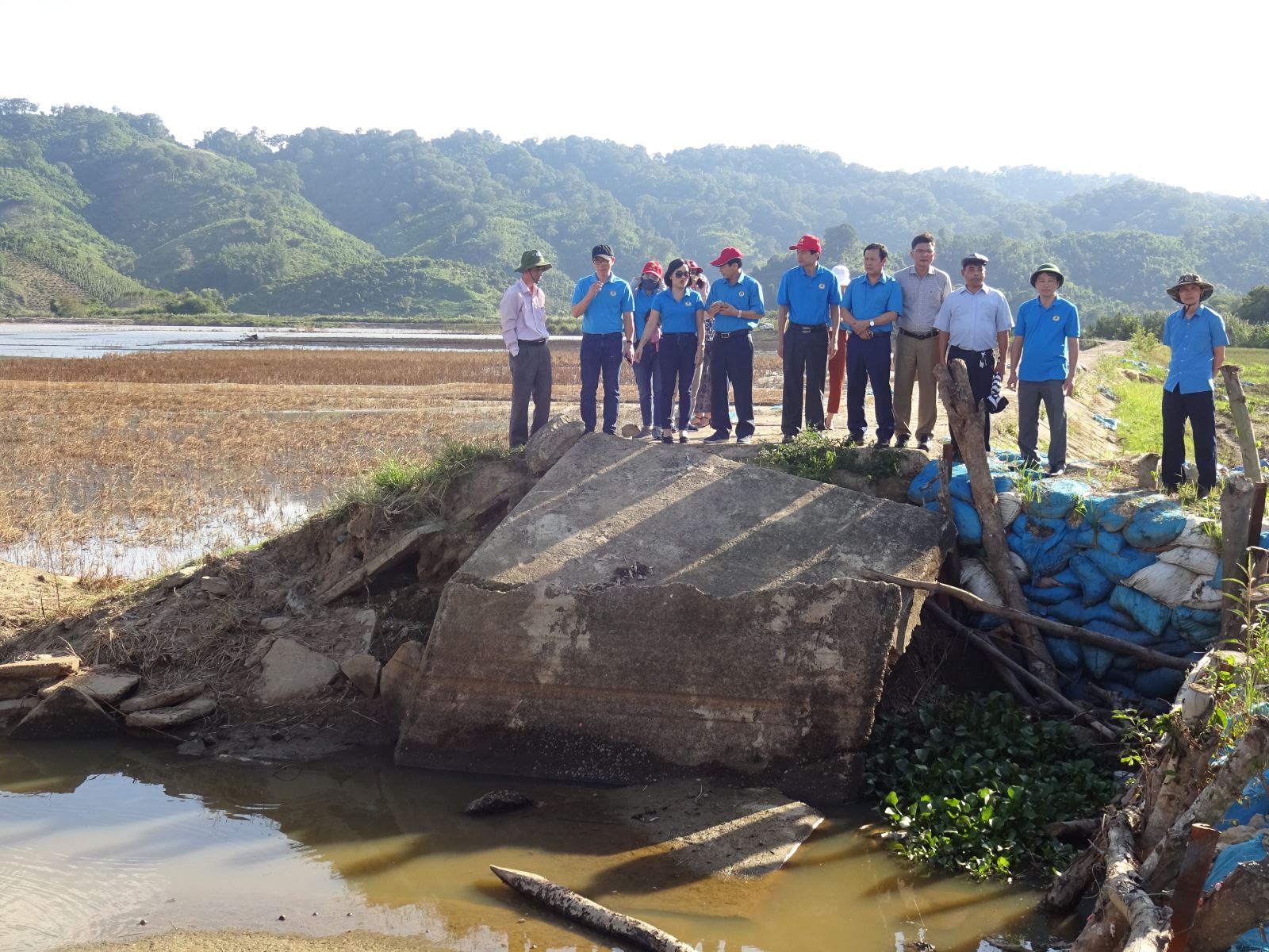 Đoàn công tác của LĐLĐ tỉnh Bắc Ninh và tỉnh Đắk Lắk thăm vị trí đê bao vỡ xã Quảng Điền